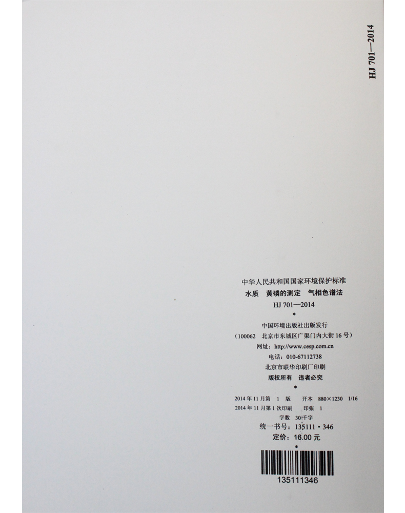 HJ 701-2014 水质 黄磷的测定 气相色谱法 国家标准 国标 GB 环境保护 135111346