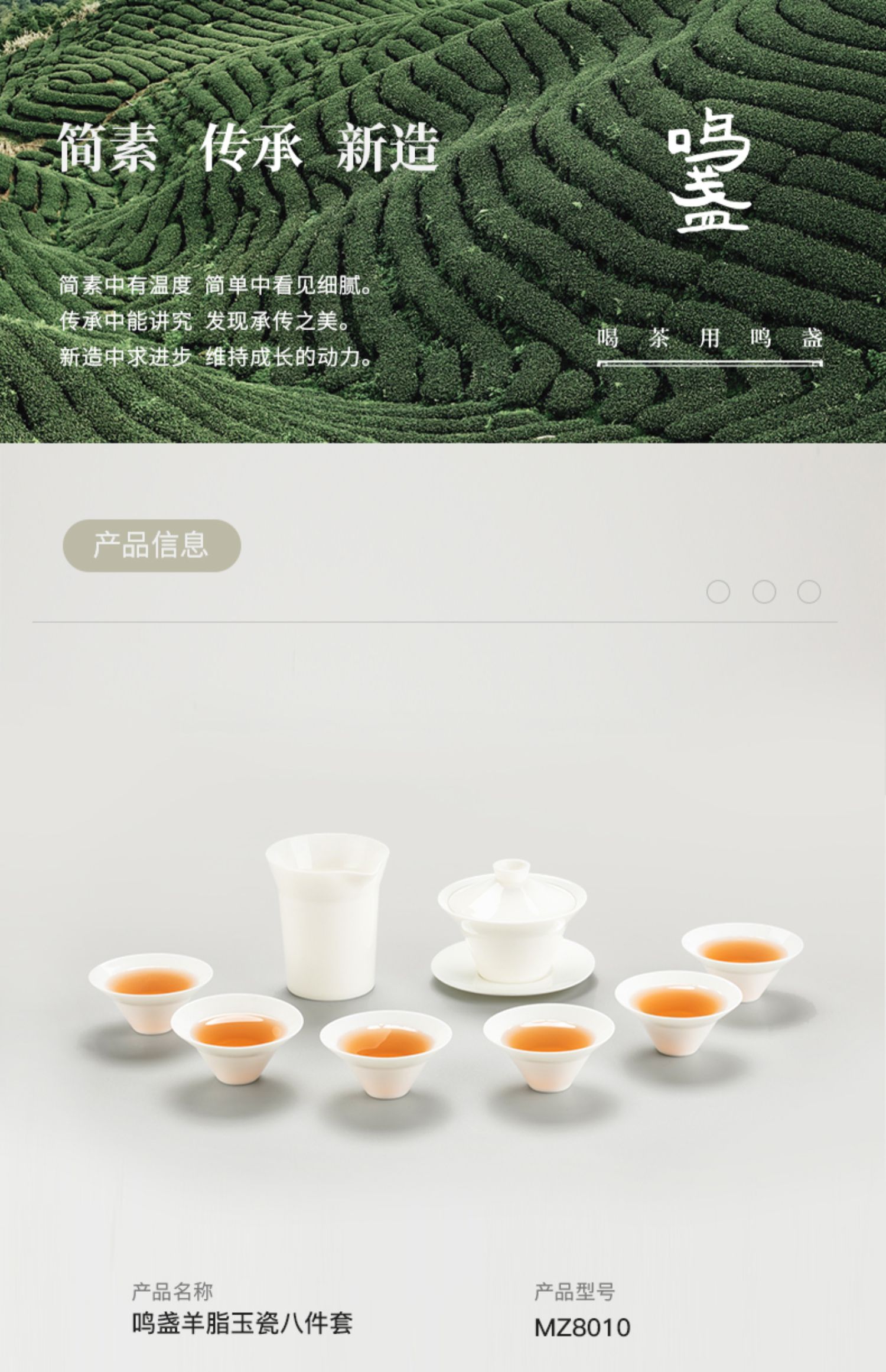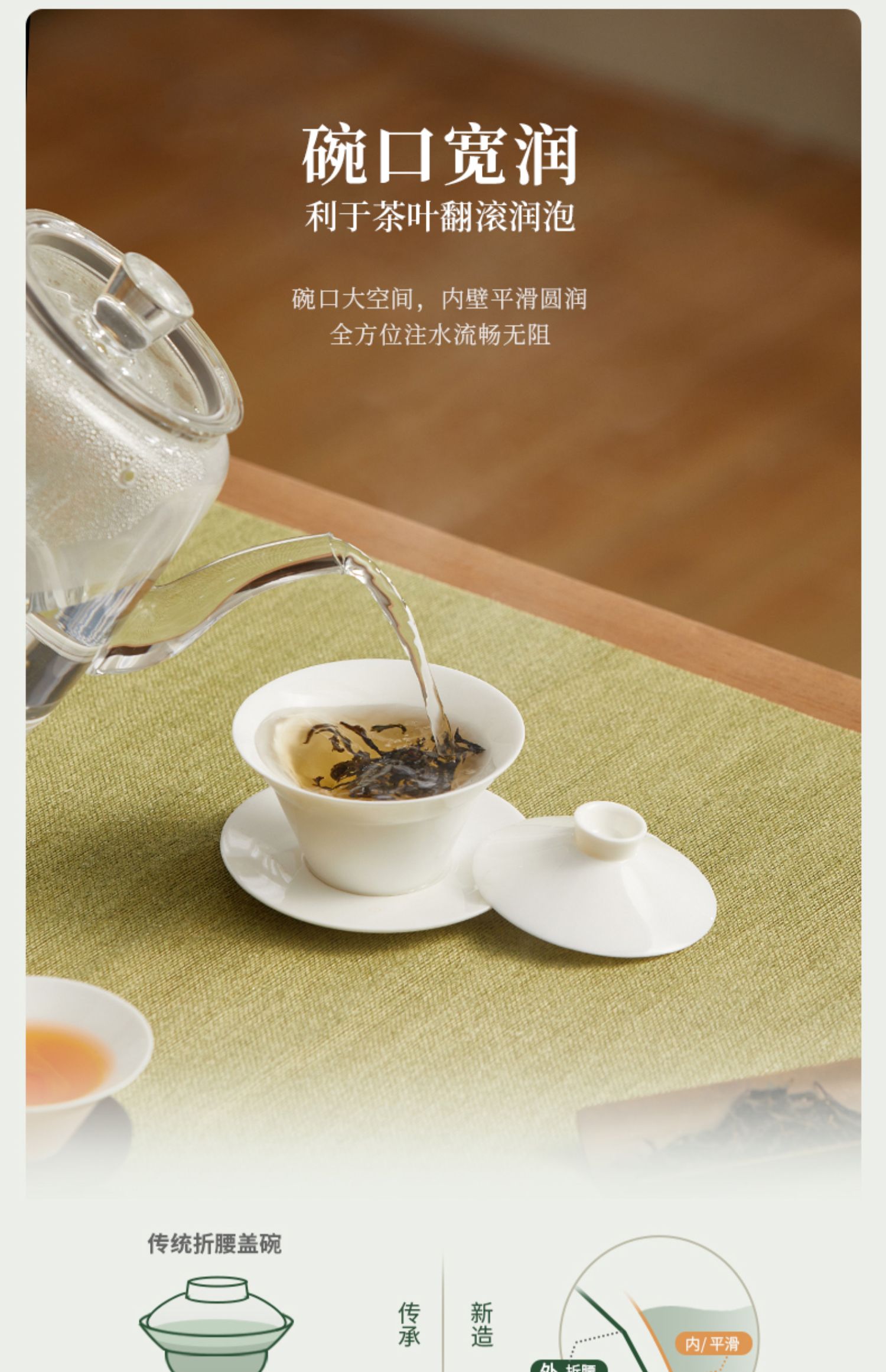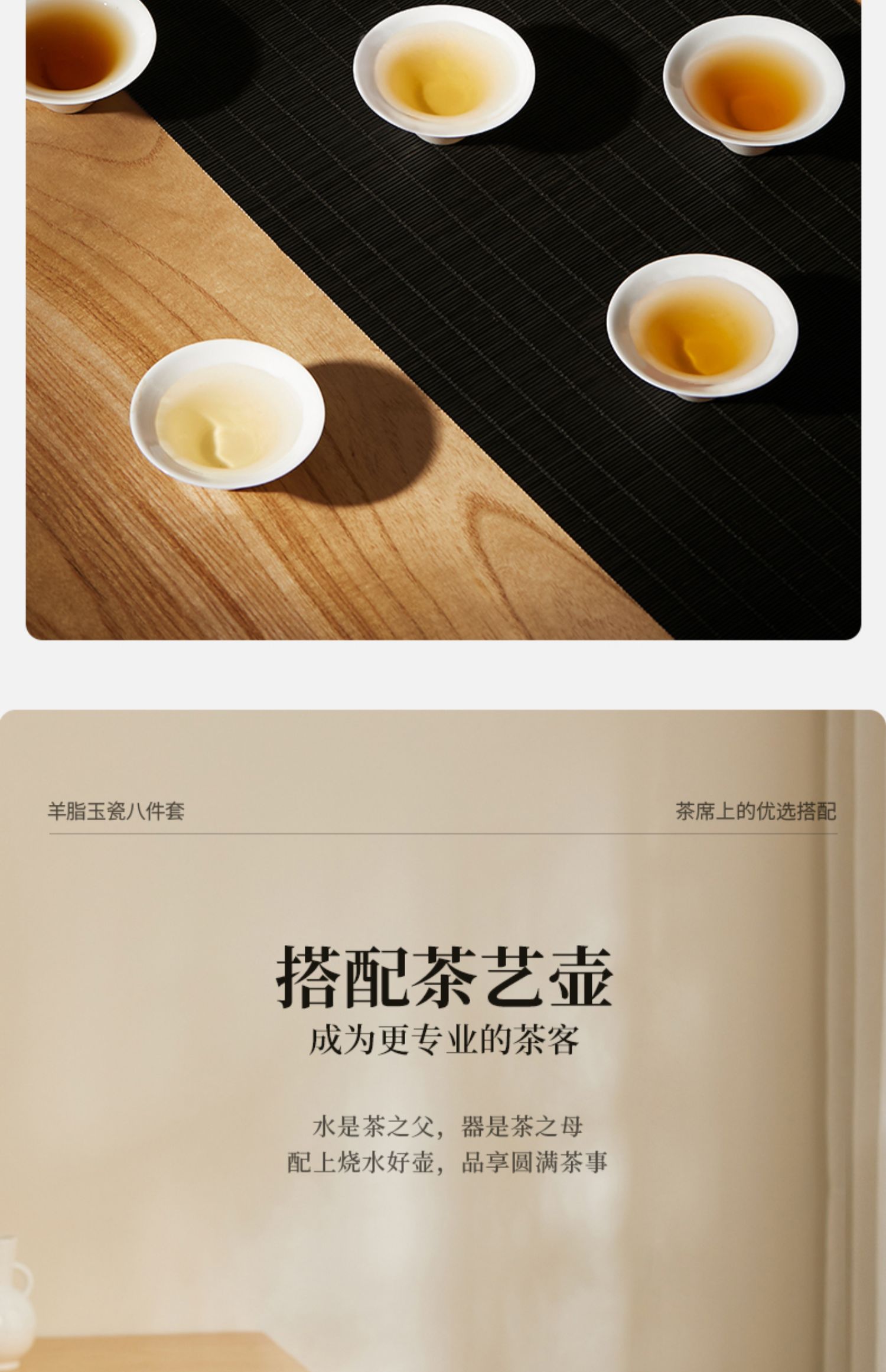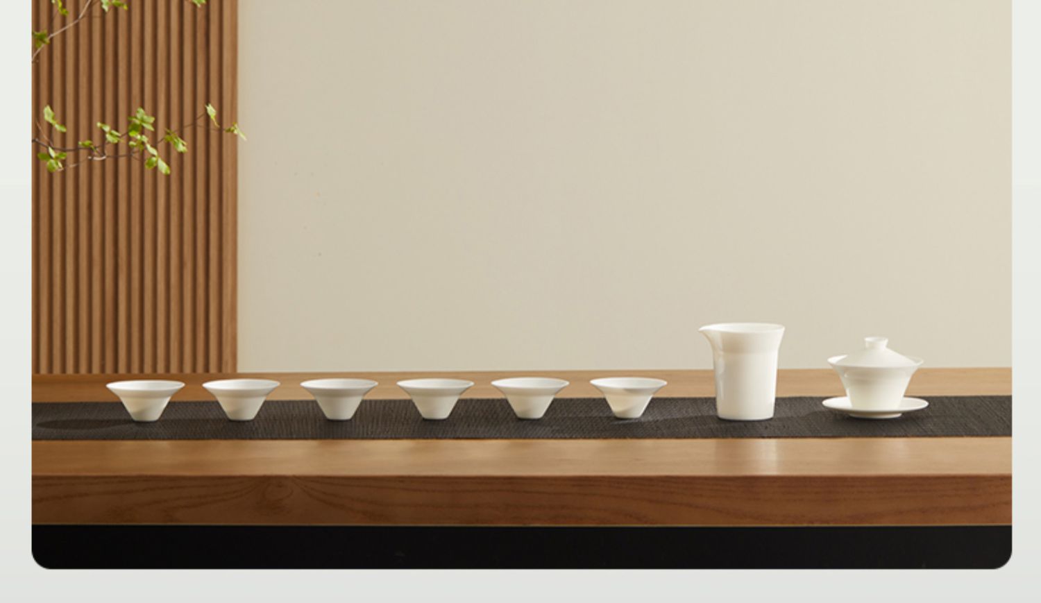 【鸣盏羊脂玉瓷茶具八件套】家用功夫茶具盖碗品茗杯公道杯泡茶套装
