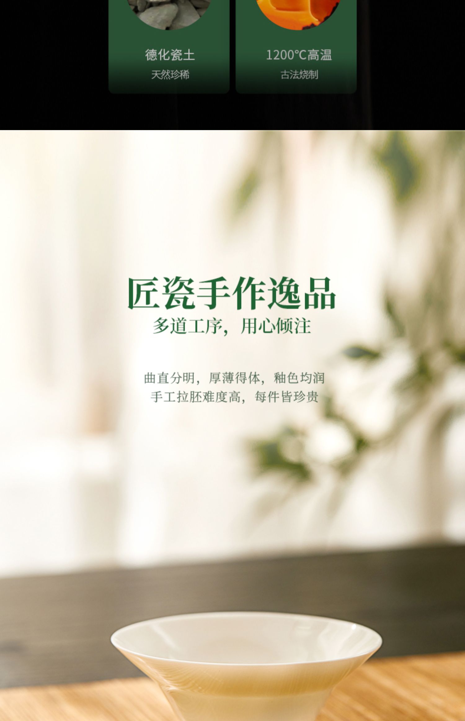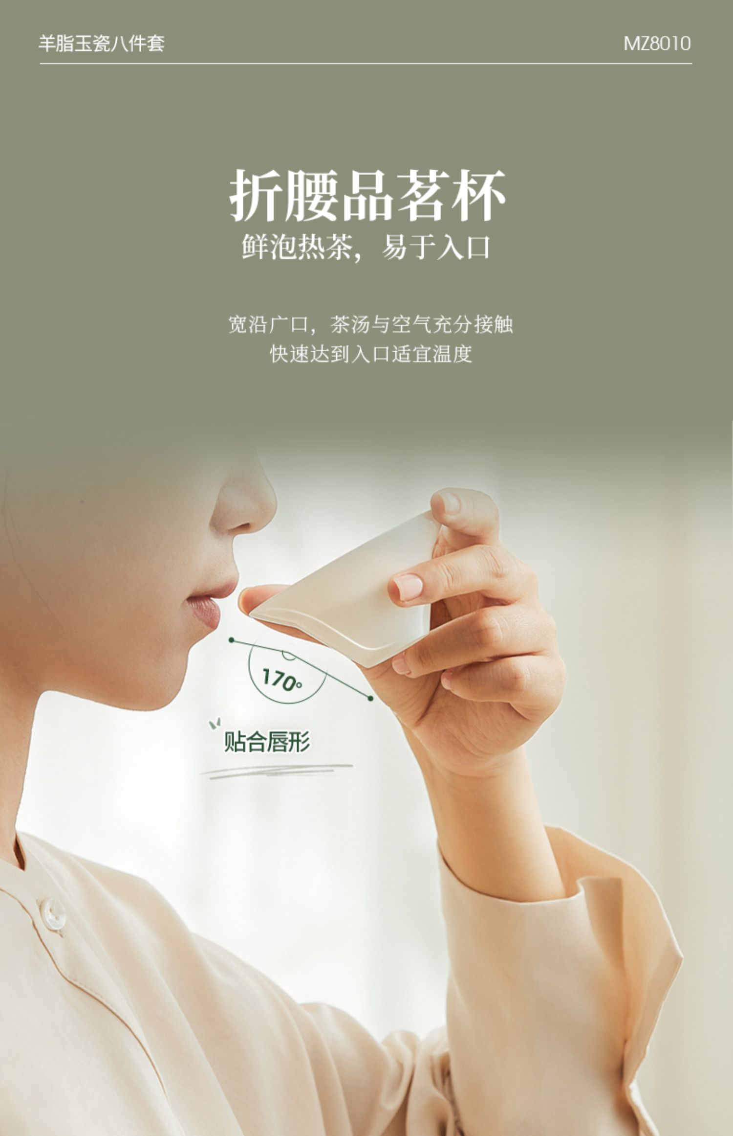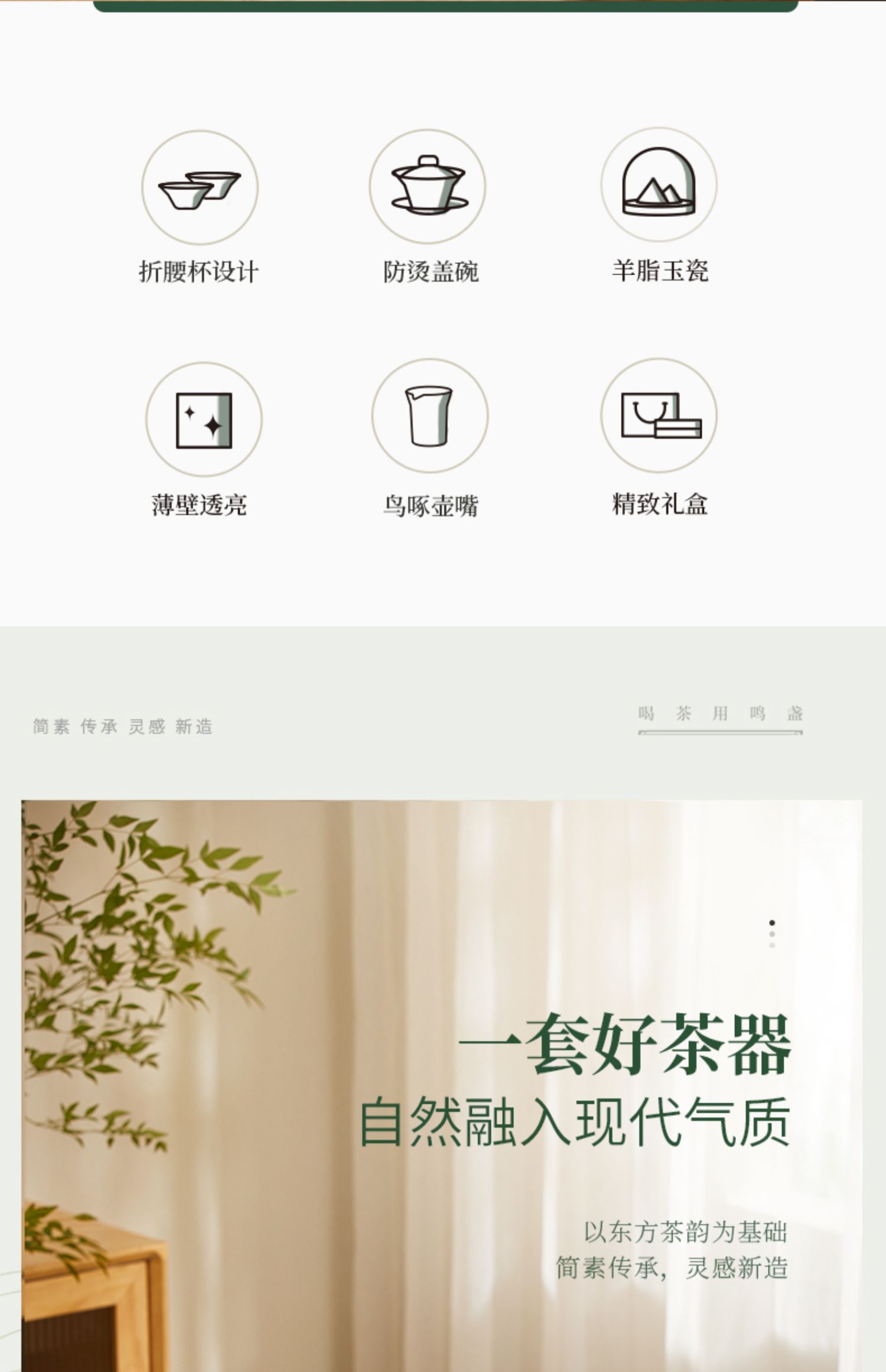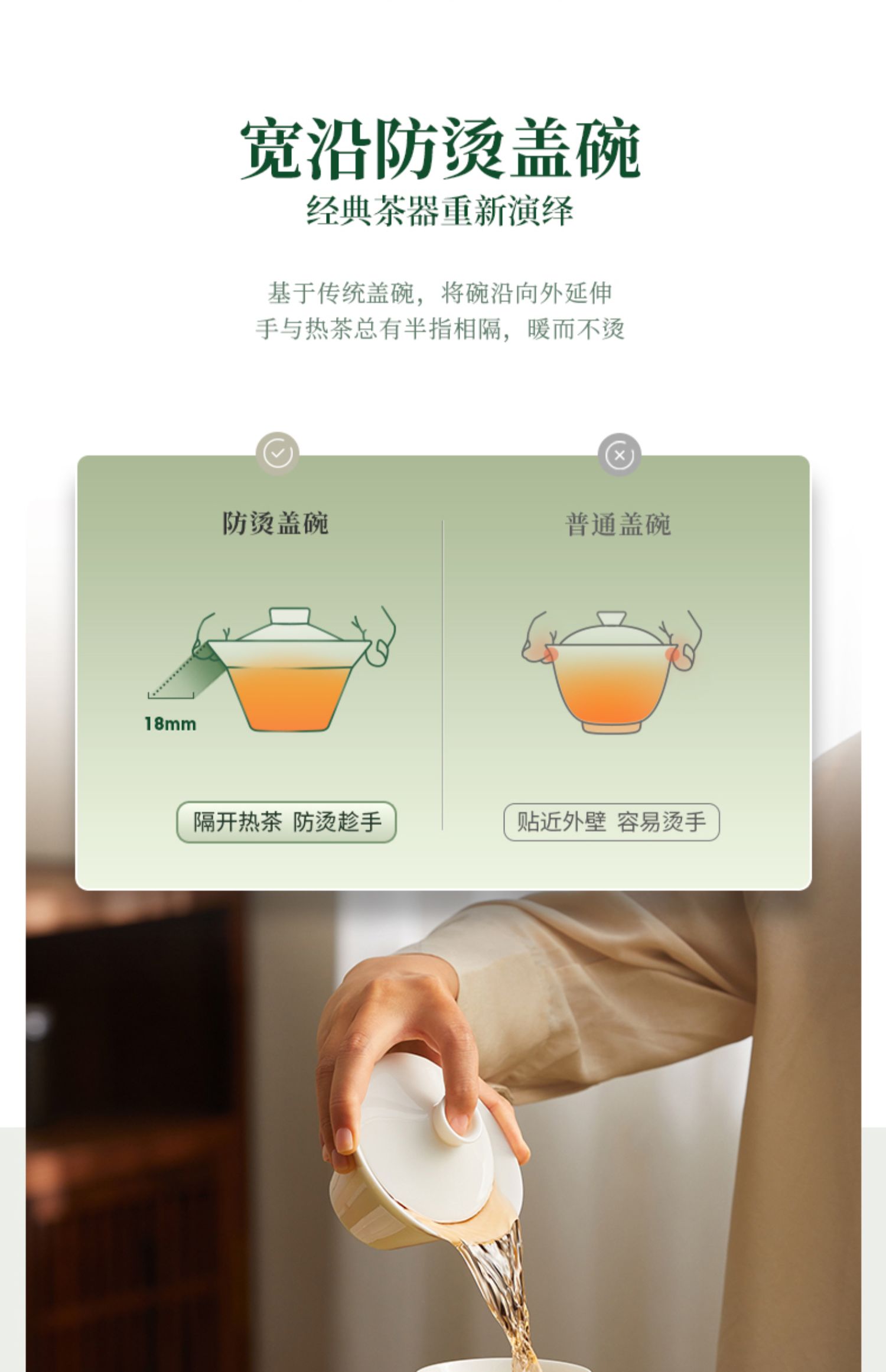 【鸣盏羊脂玉瓷茶具八件套】家用功夫茶具盖碗品茗杯公道杯泡茶套装