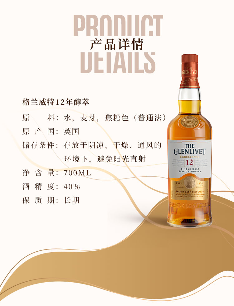 格兰威特12年醇萃 单一麦芽威士忌700ml