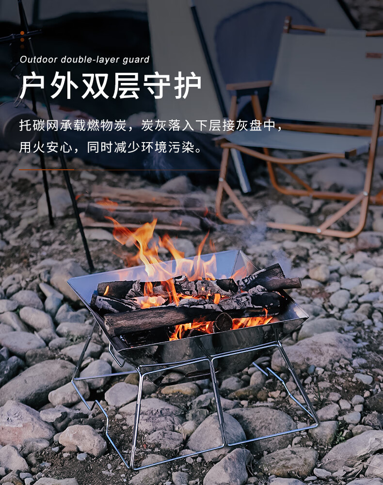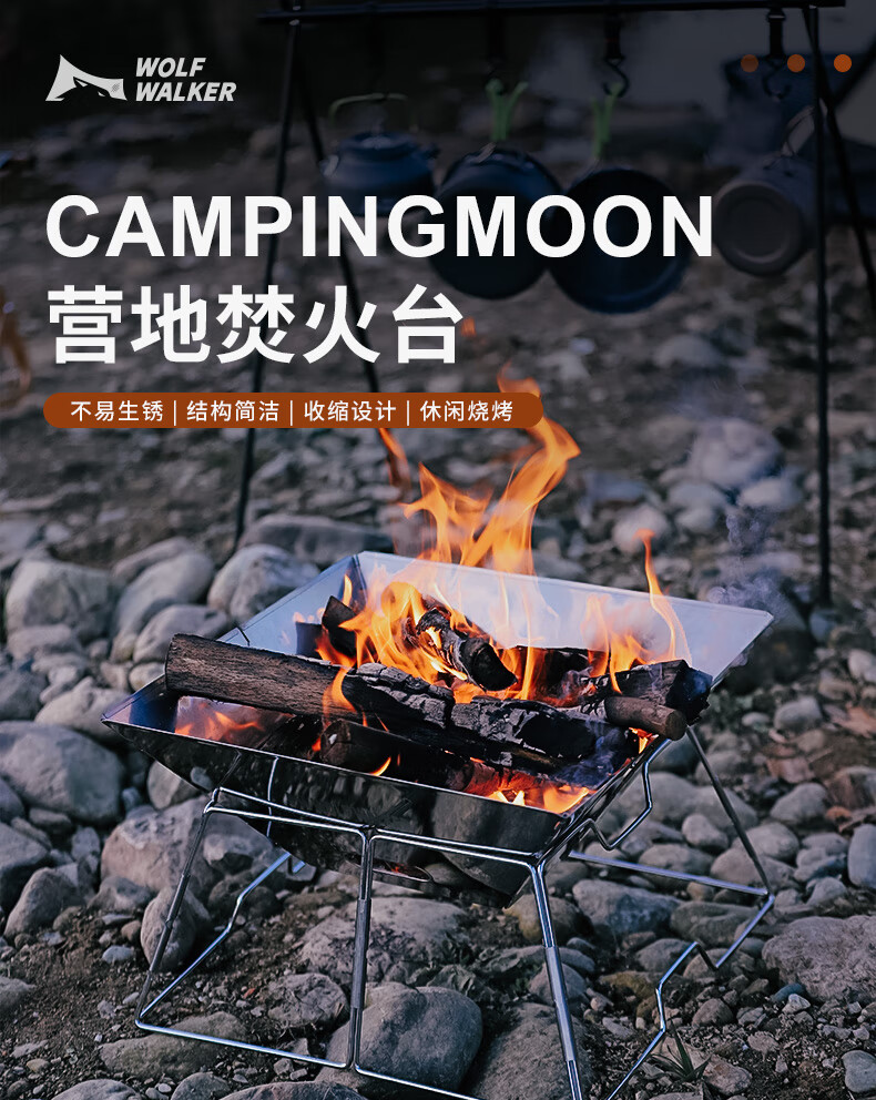 狼行者 户外烧烤炉烧烤架不锈钢野外折叠烤肉架便携篝火炉子焚火台加大