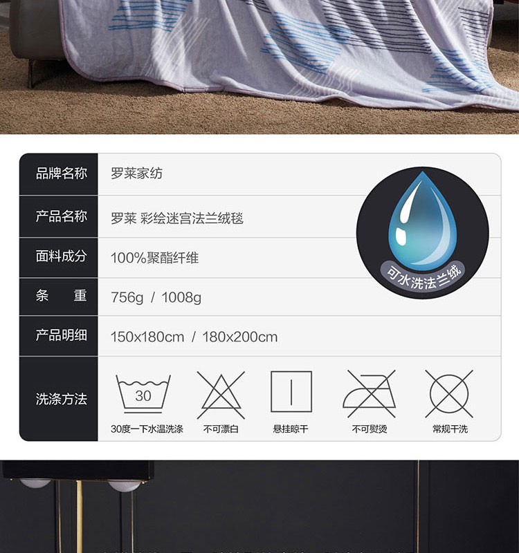 罗莱 彩绘迷宫 法兰绒毯180*200 1008g