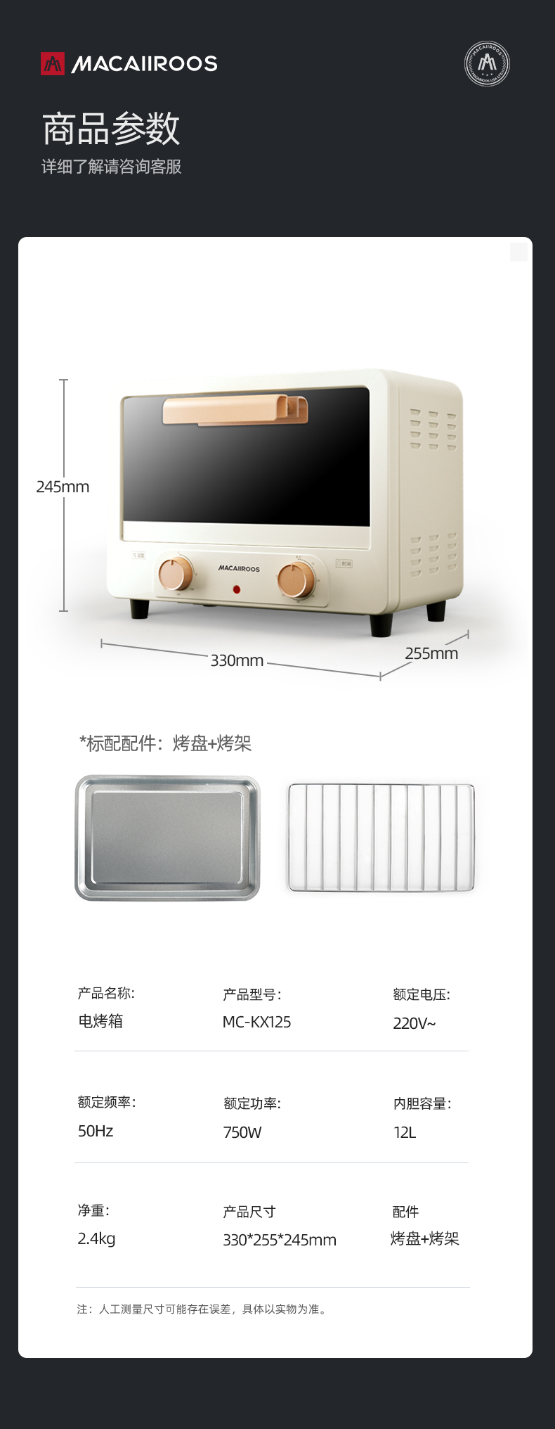 【小家电】迈卡罗MC-KX125家用多功能电烤箱 烘焙小型电烤箱HF