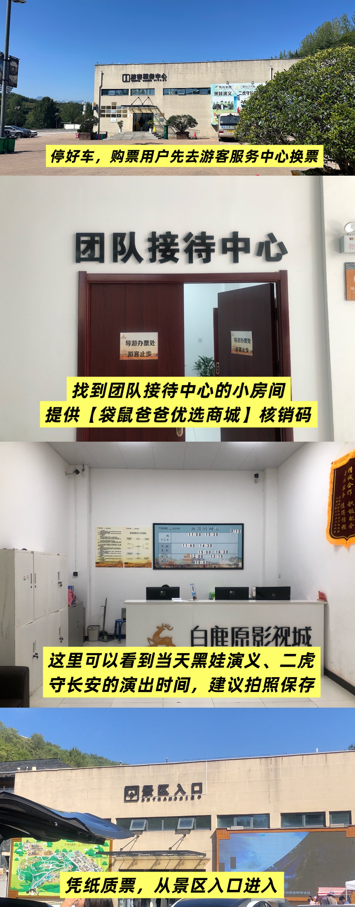 使用规则 1.下单用户最晚要在入园当日15:00至【游客服务中心】凭商城核销二维码换取纸质票,因套票内容不包含《夜谭白鹿原》演出,15:00之后无法正常入场,请一定留意游览时间