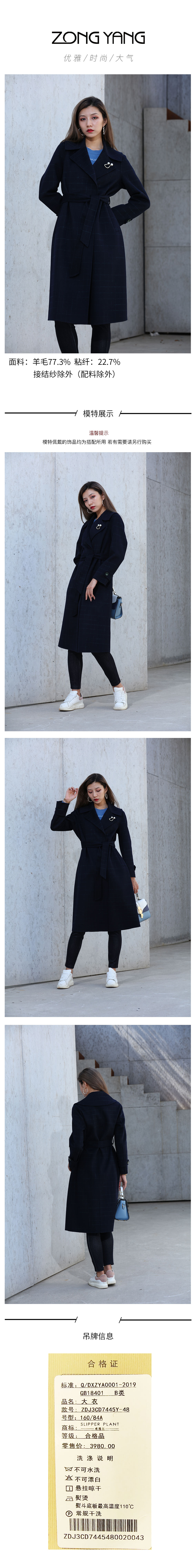 宗洋&卓蔻兰女士长款时尚格纹大衣ZDJ3CD7445Y-48