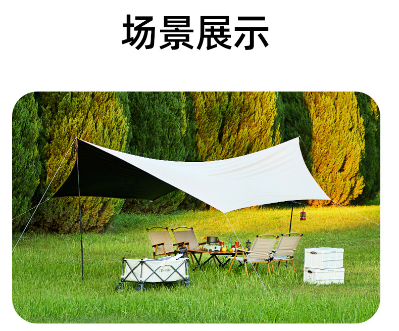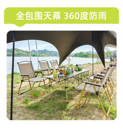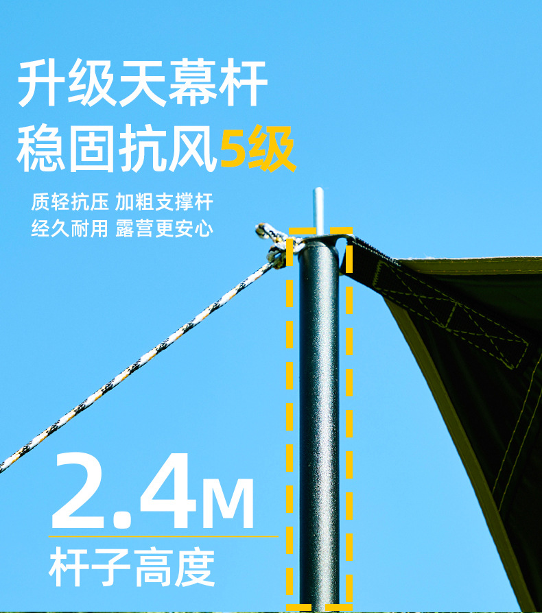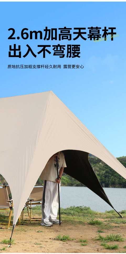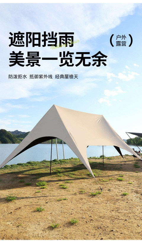 户外露营旅游野炊六角天幕帐篷 加厚防晒防水黑胶天幕 涂银层遮阳棚 露营不怕遮阳天幕