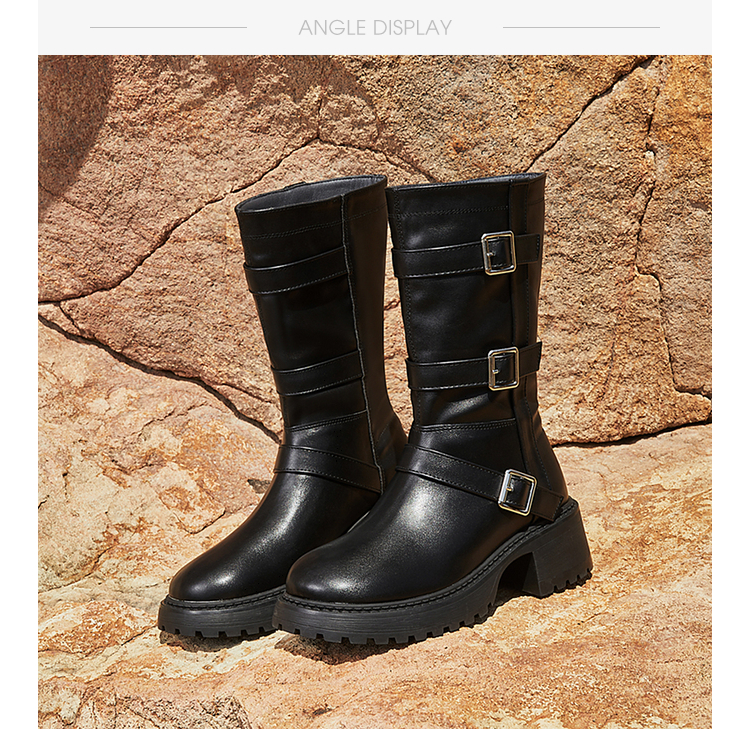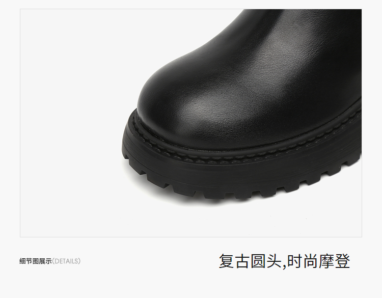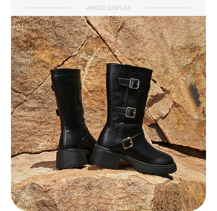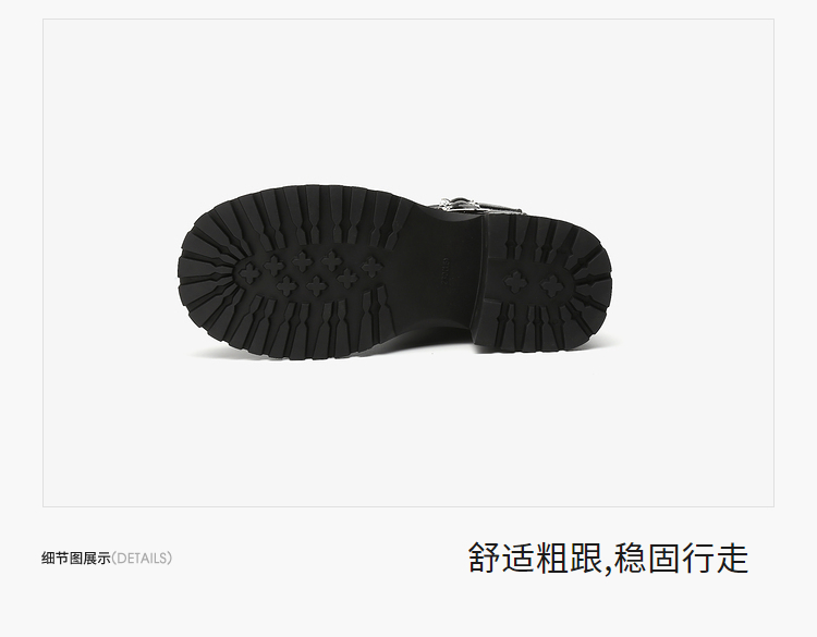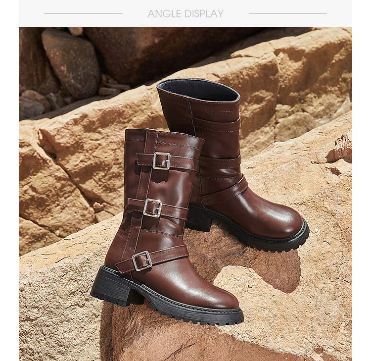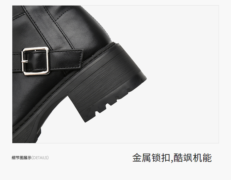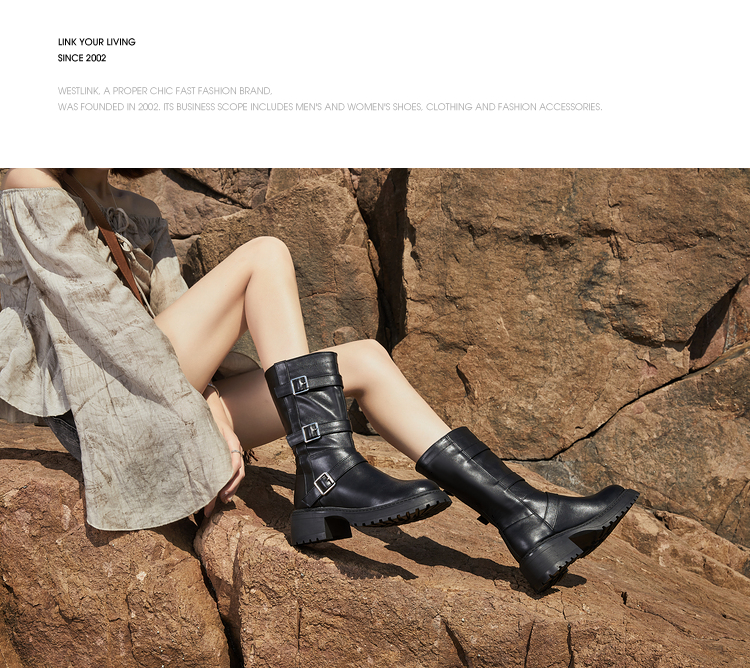 西遇中筒骑士靴女新款秋冬复古搭扣西部牛仔靴增高厚底马丁靴D2134220