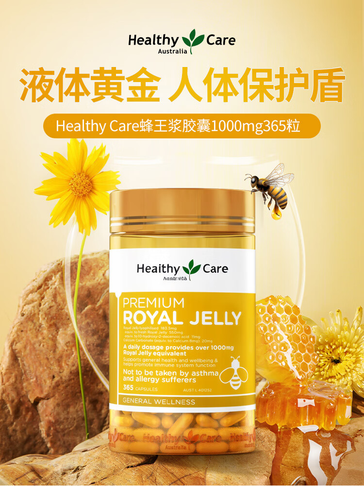 【海豚美购】Healthy Care 蜂王浆蜂皇浆胶囊 365粒