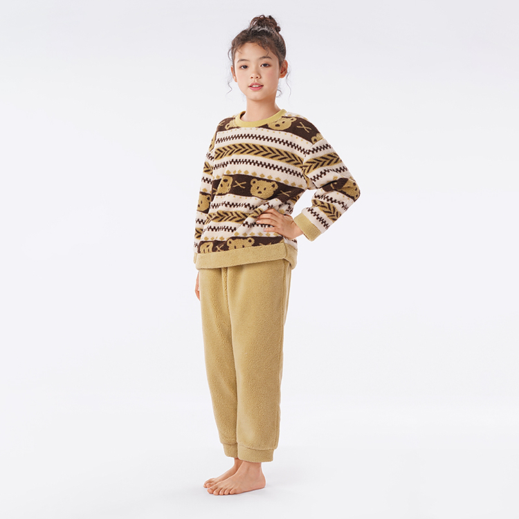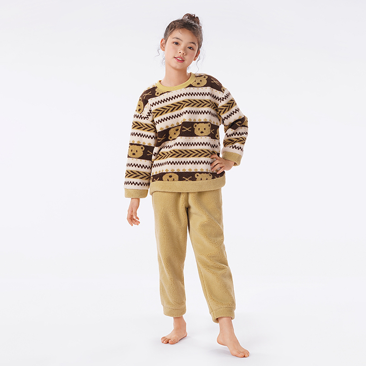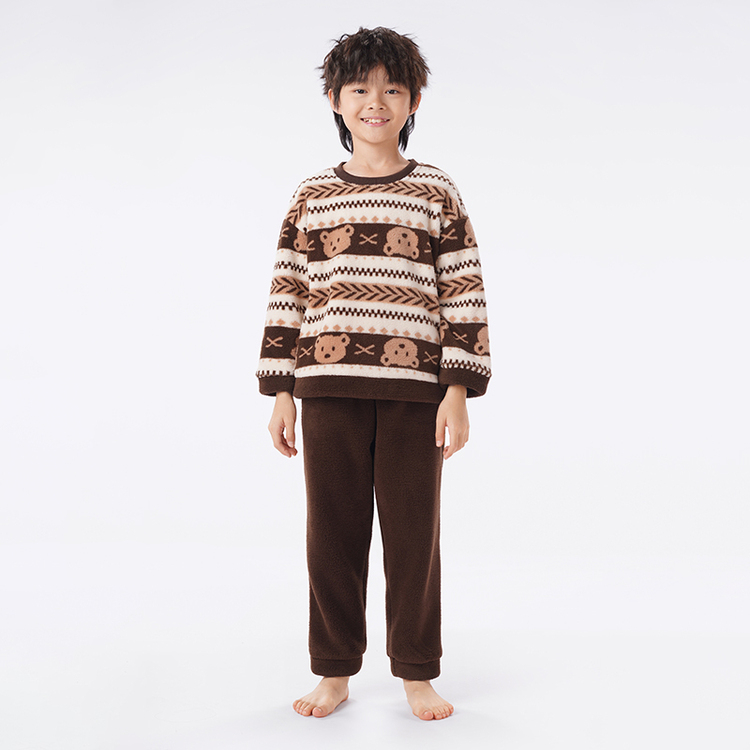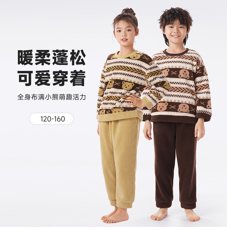都市丽人睡衣男童女童蛋白绒家居服长袖长裤童装摇粒绒套装JHH9C3
