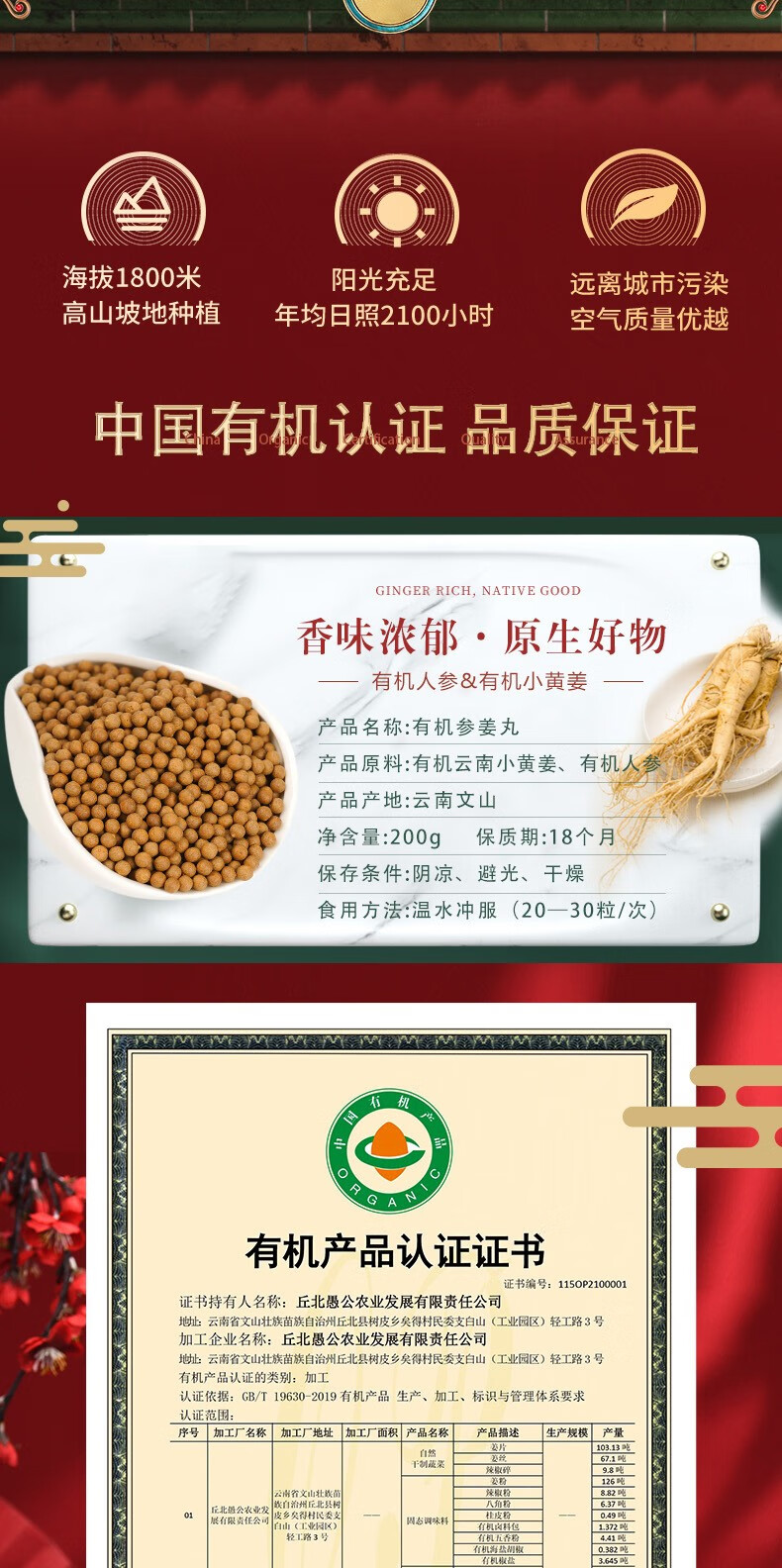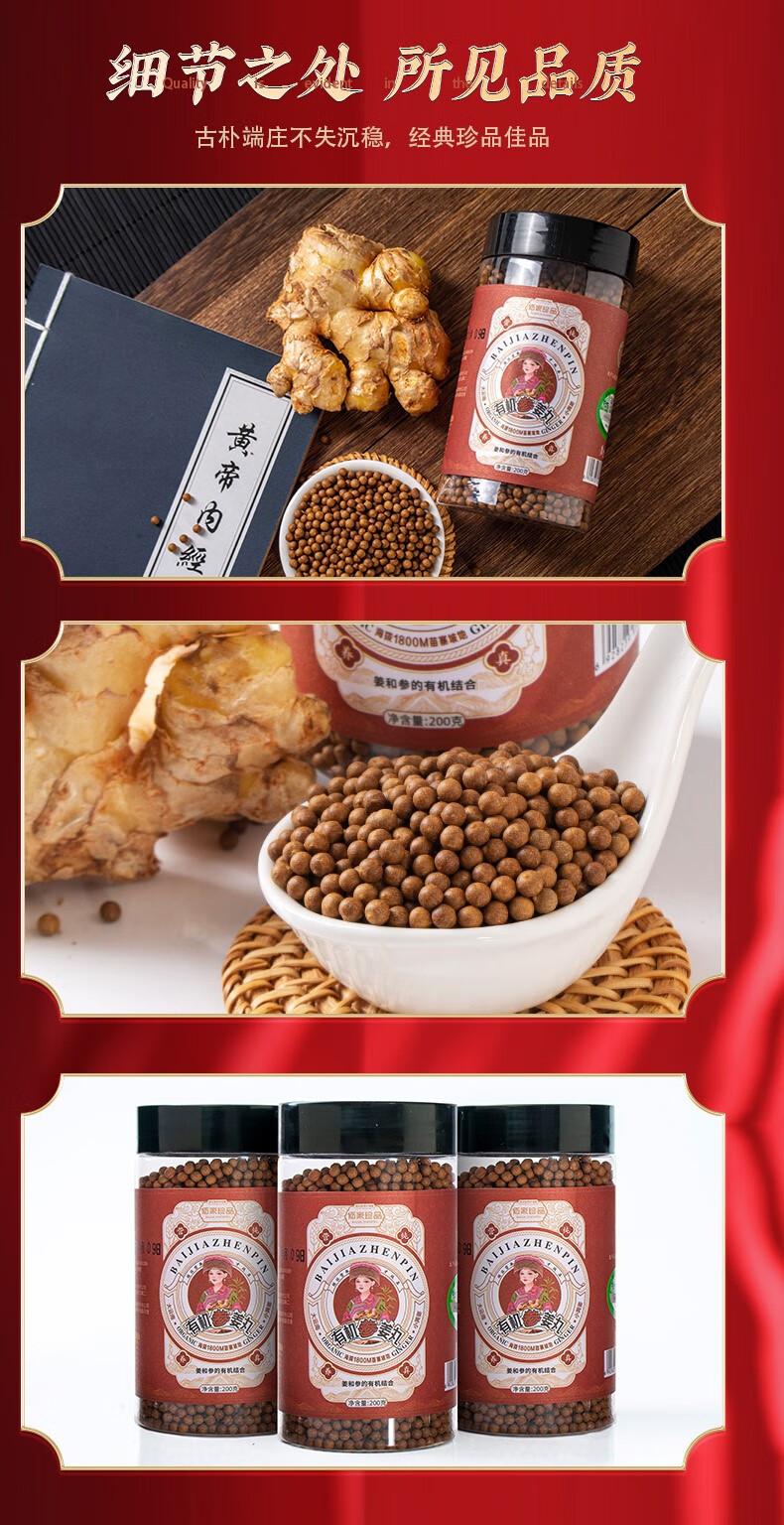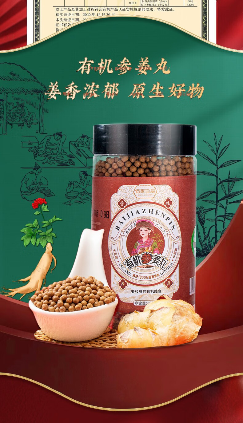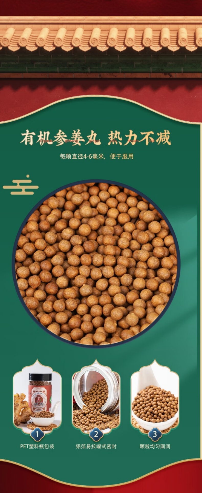 佰家珍品有机参姜丸 云南小黄姜人参纯姜丸 食用炒熟姜粉粒200g