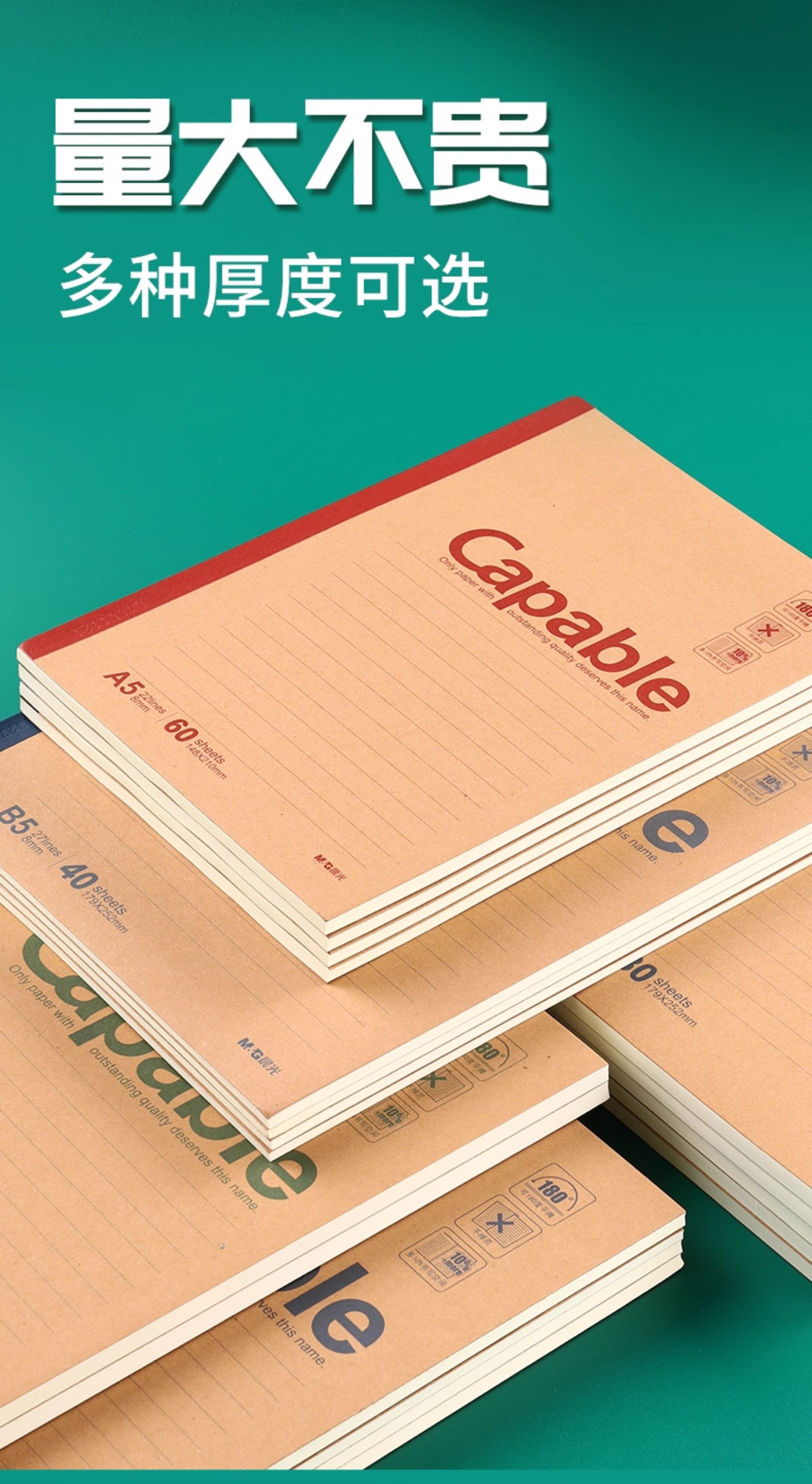 晨光笔记本B5A5A4A6简约学生复古牛皮纸记事本商务办公加厚无线软皮初中高中横线练习本