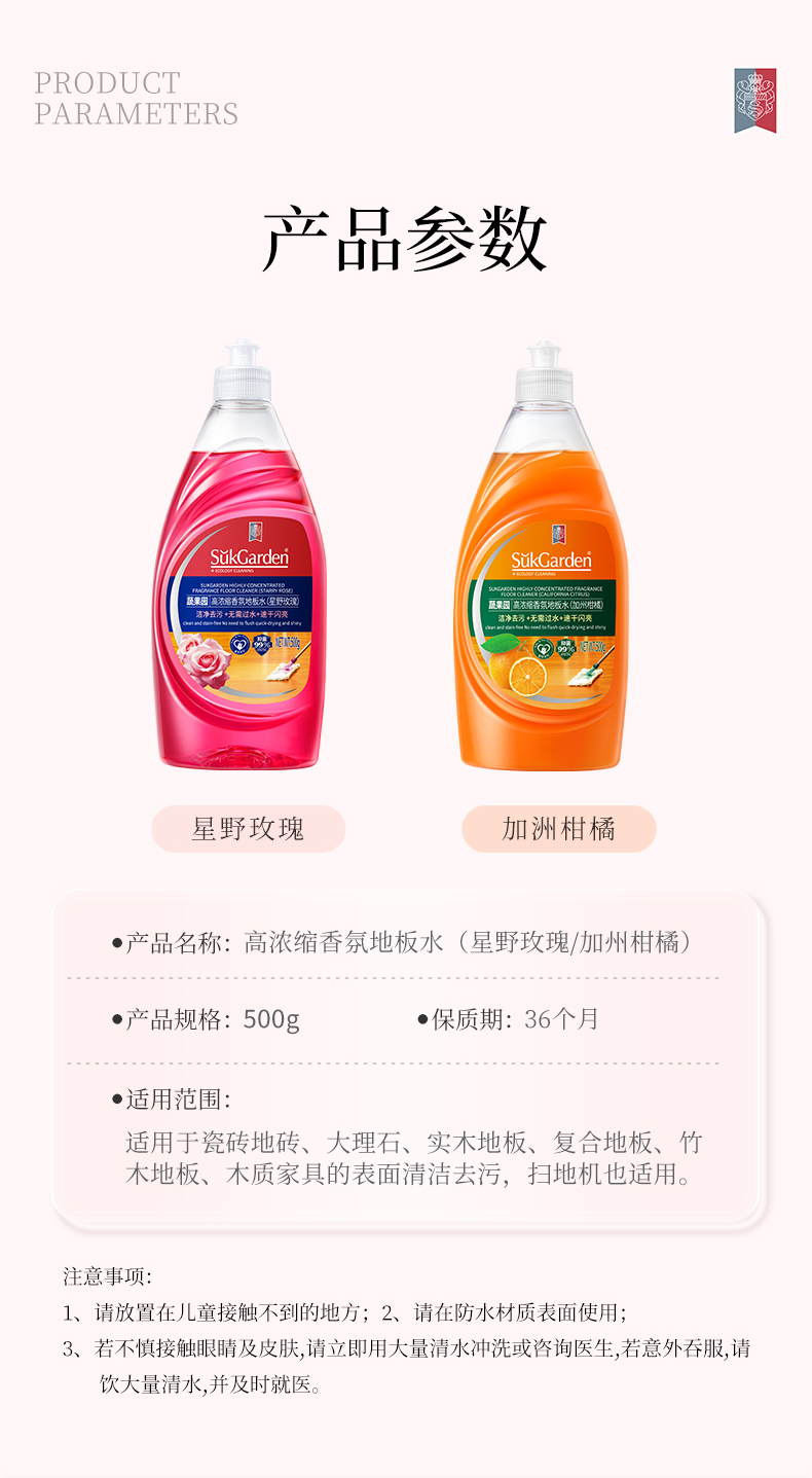 SukGarden蔬果园高浓缩香氛地板水(加州柑橘)-500g