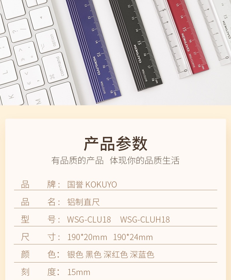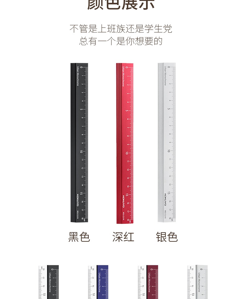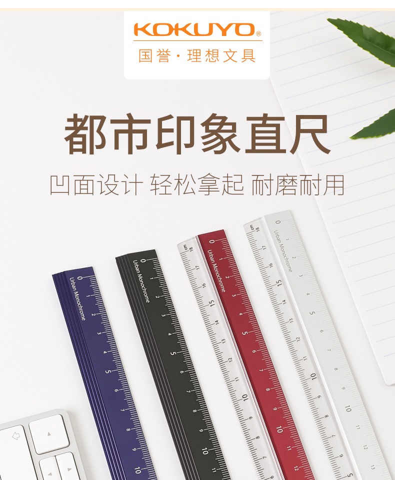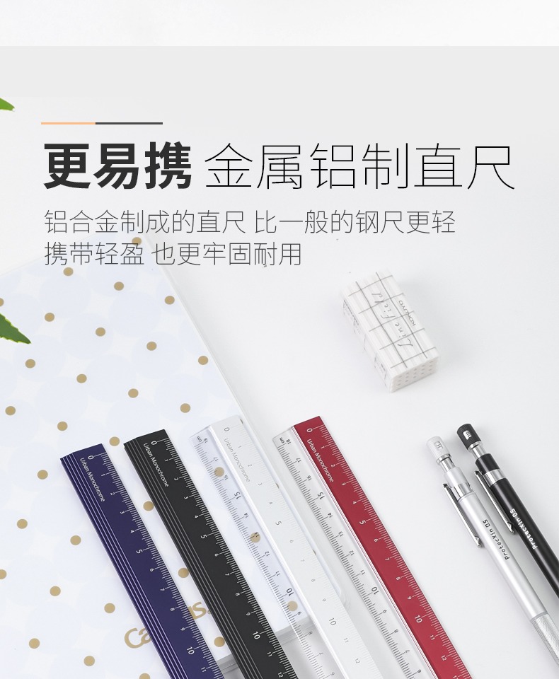 日本国誉都市印象铝制直尺18cm学生文具不锈钢工具尺工程考量绘图L型金属高精度