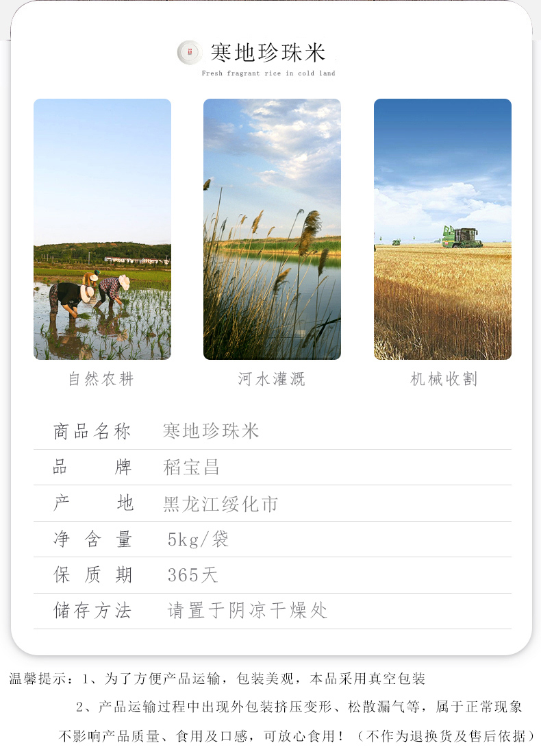 稻宝昌新米正宗东北大米寒地珍珠米10斤【真空包装】