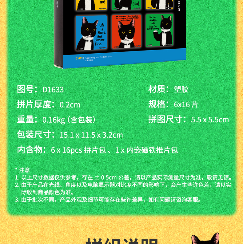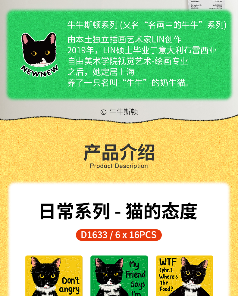 96片 磁铁拼图 D1633 牛牛斯顿-日常系列-猫的态度