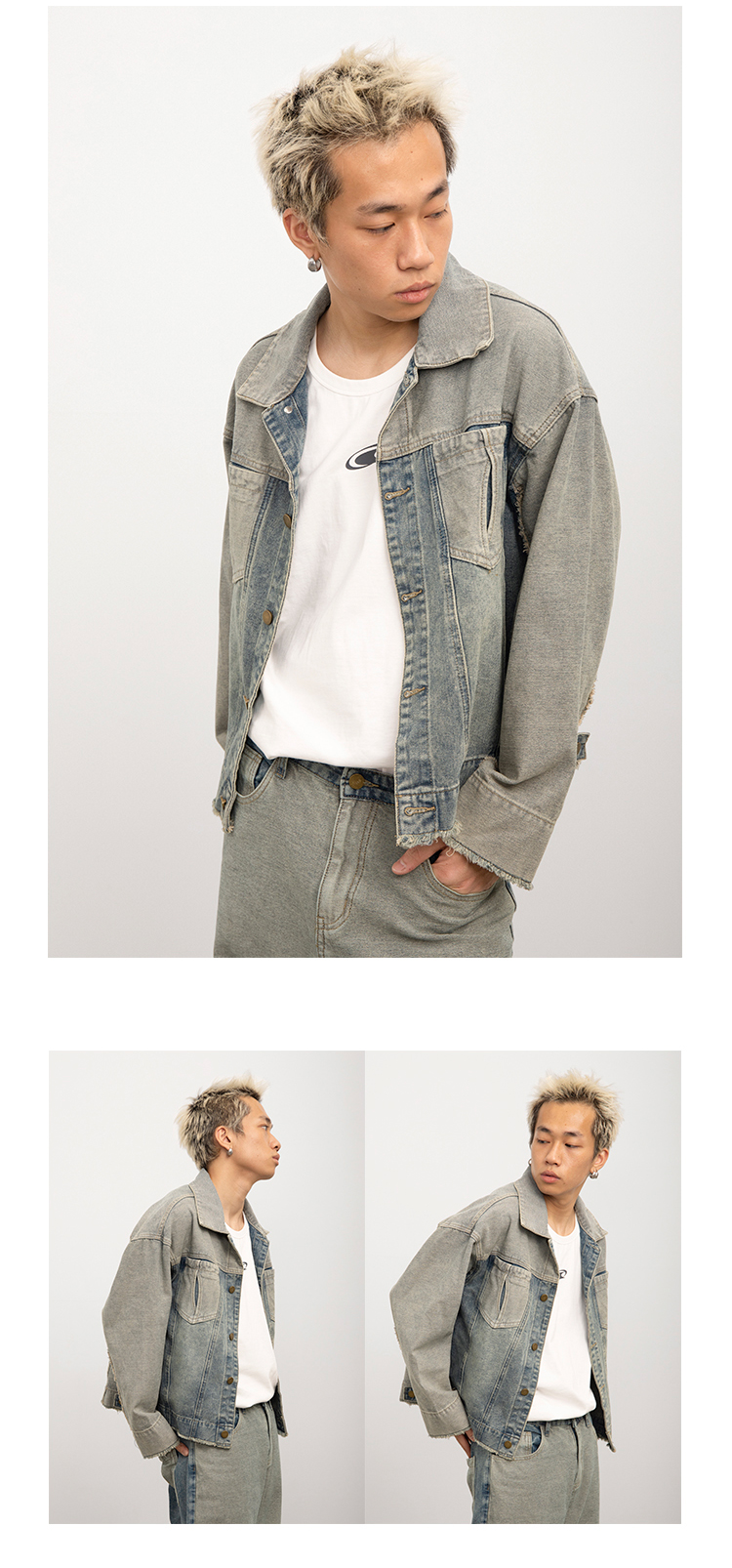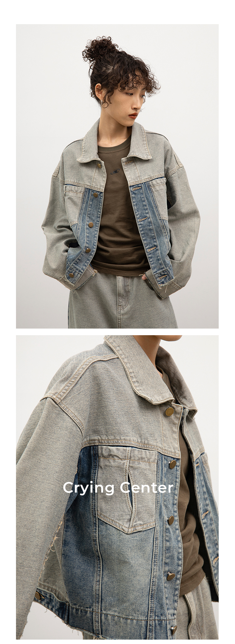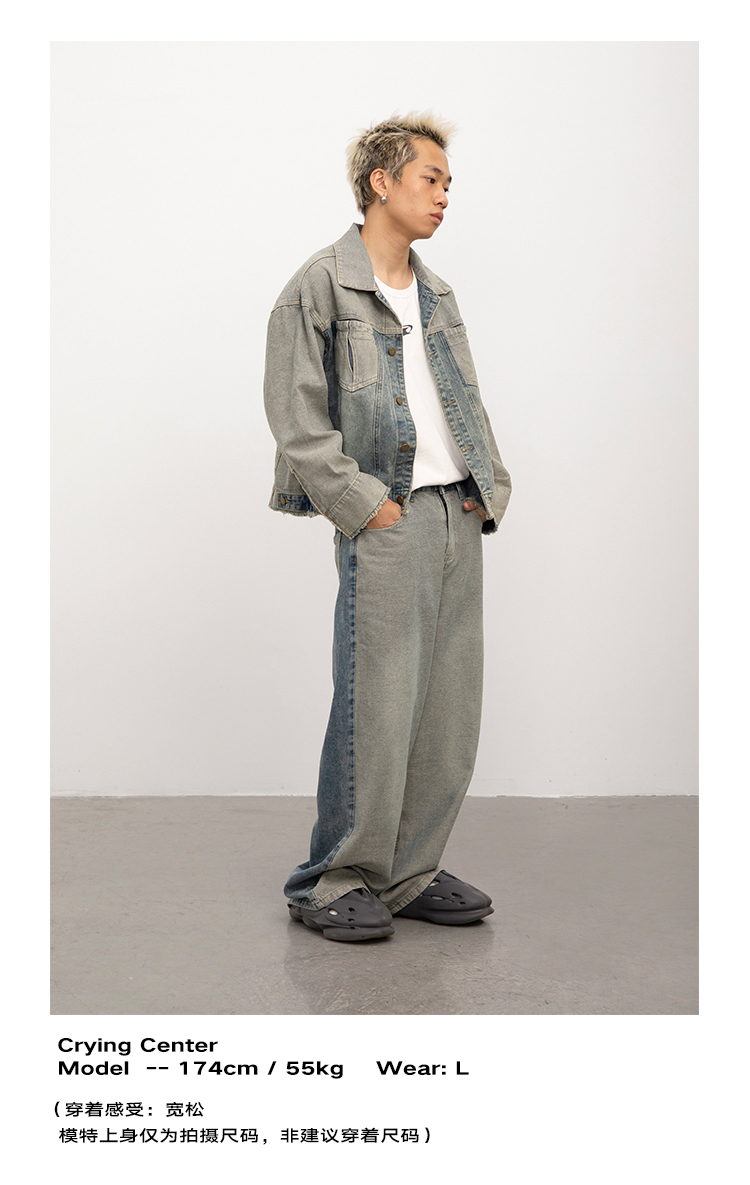 CryingCenter 怀旧洗水毛边复古牛仔反穿外套 哭喊中心