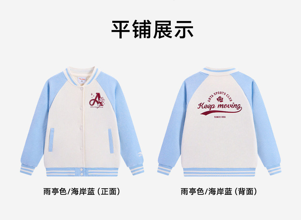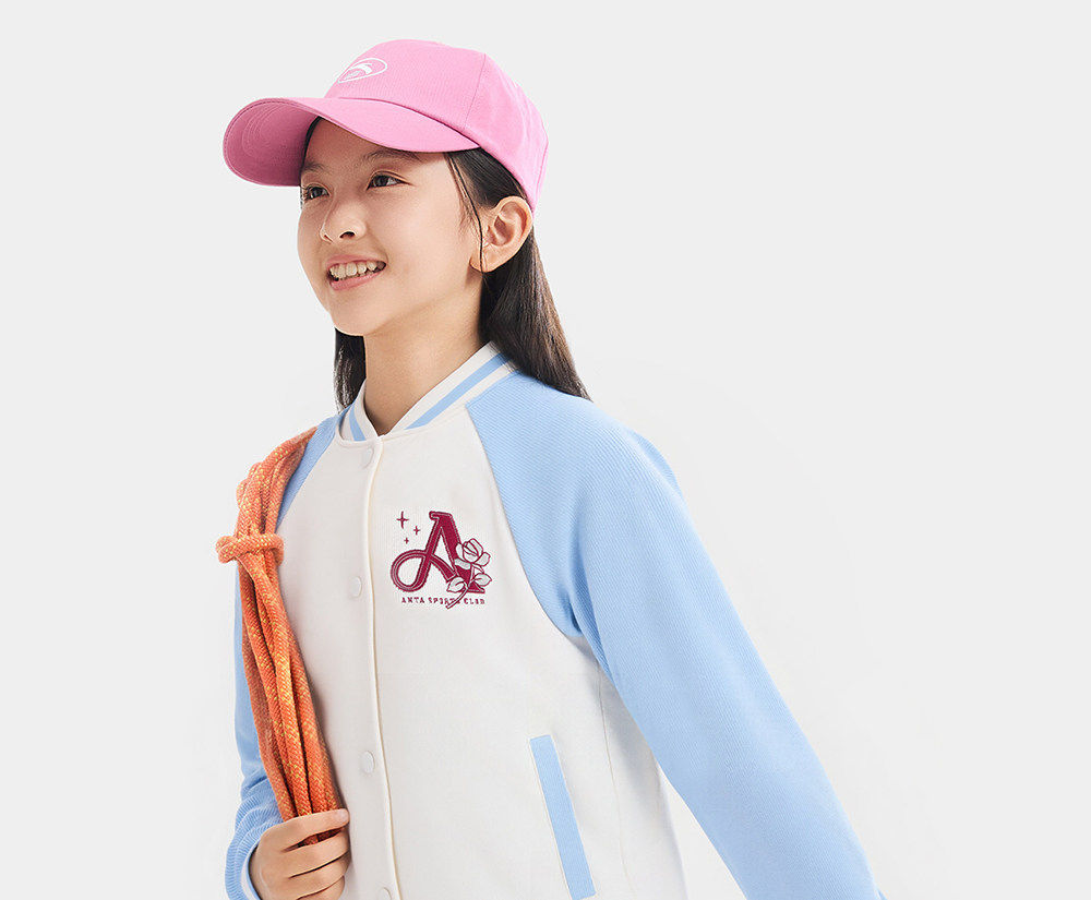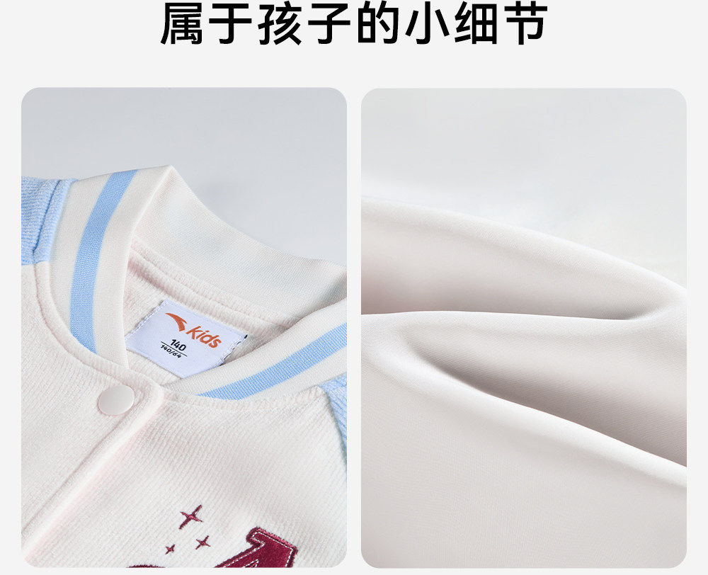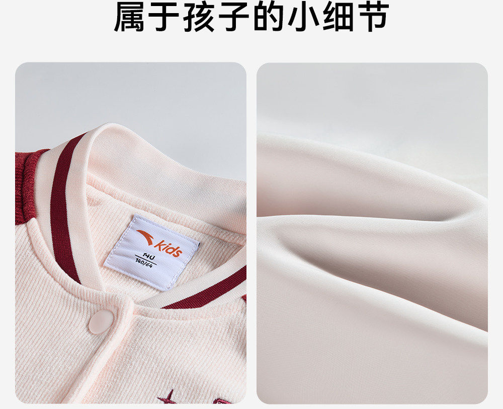 安踏儿童女大童针织运动上衣2026年新款亲肤中大童棒球服外套篮球362621708