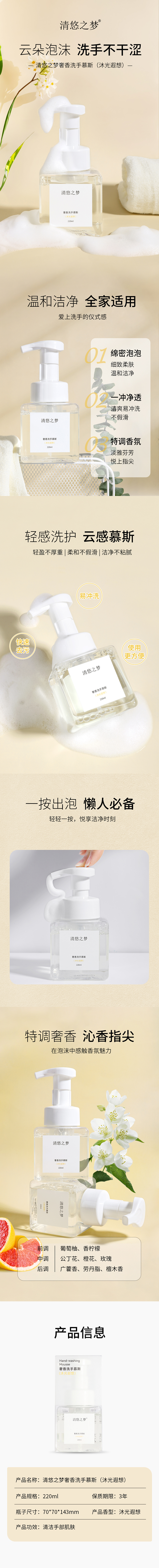 清悠之梦 奢香洗手慕斯(沐光遐想)220ml