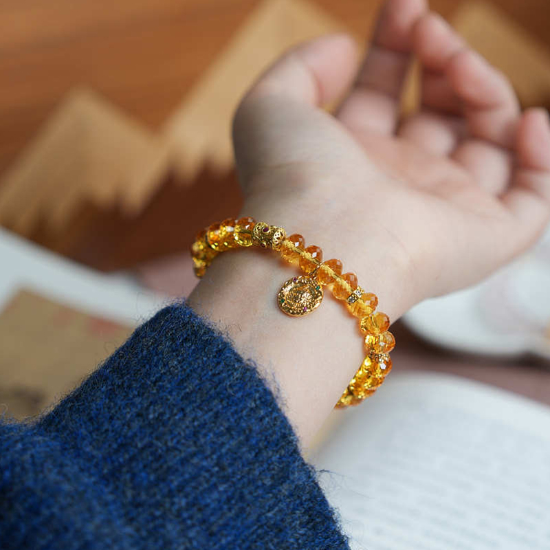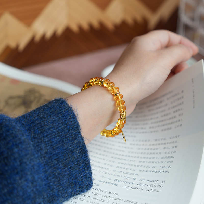 【品名】敦煌顺财·黄水晶黄财神手串