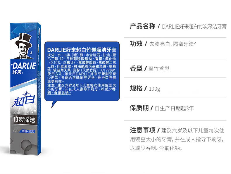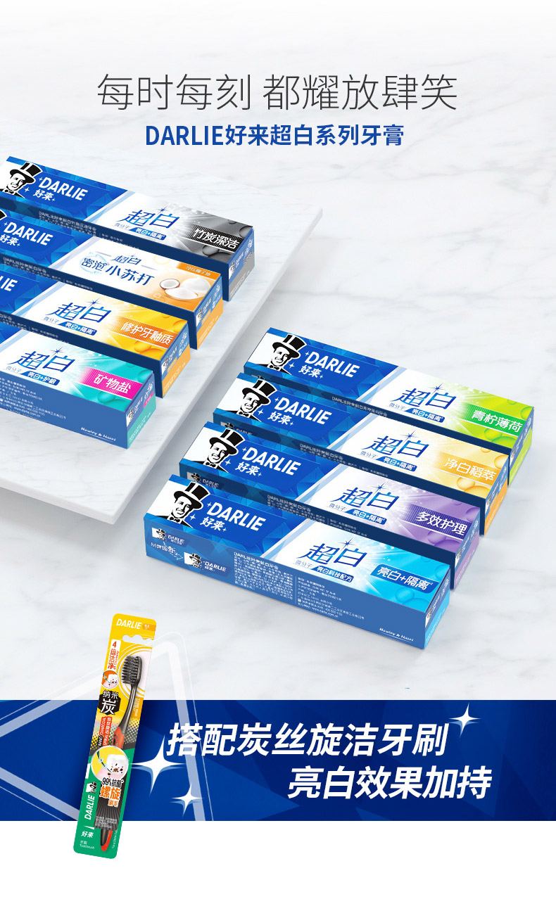 DARLIE好来(原黑人)超白竹炭深洁牙膏190g*2支 (新老包装随机发放)
