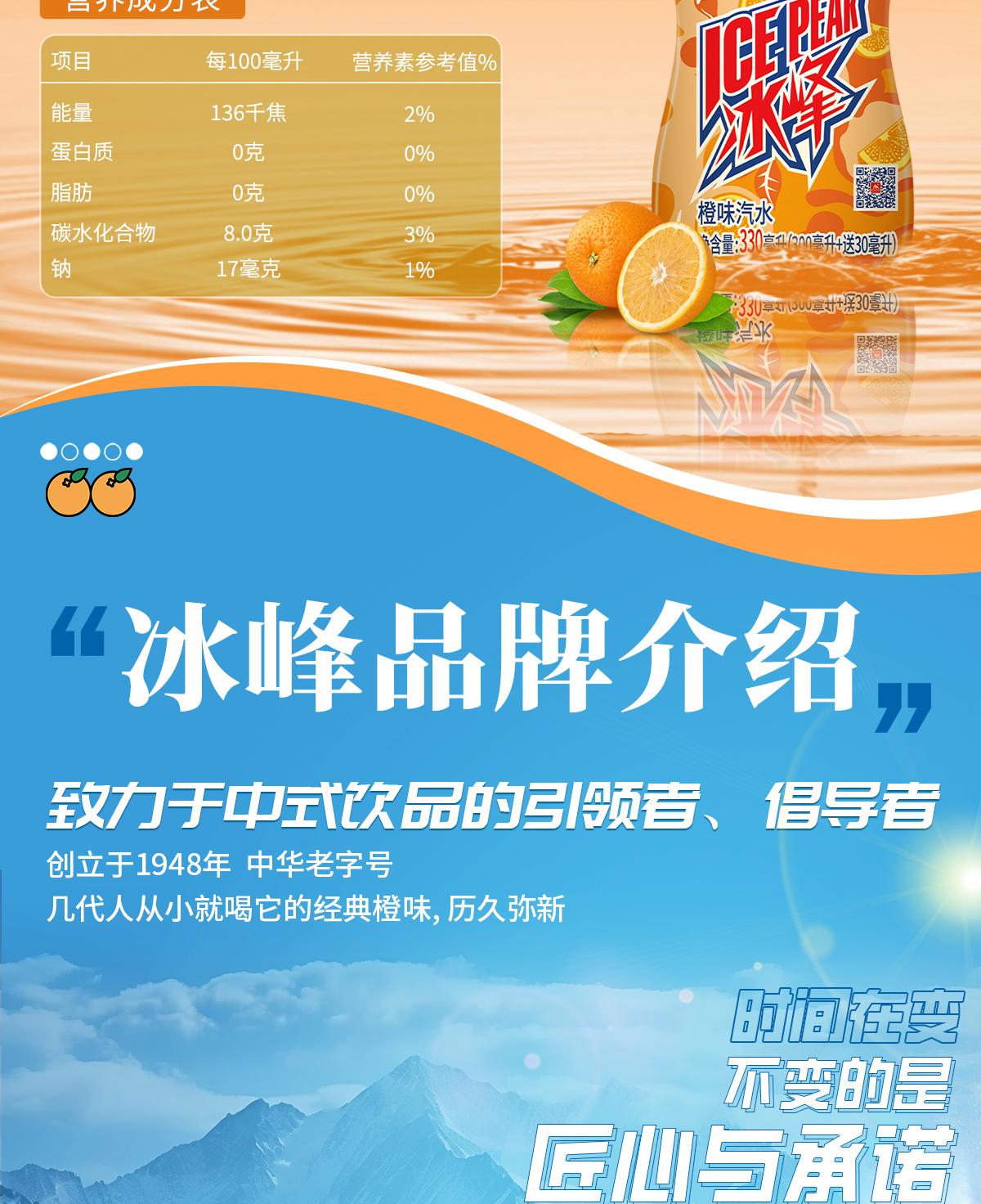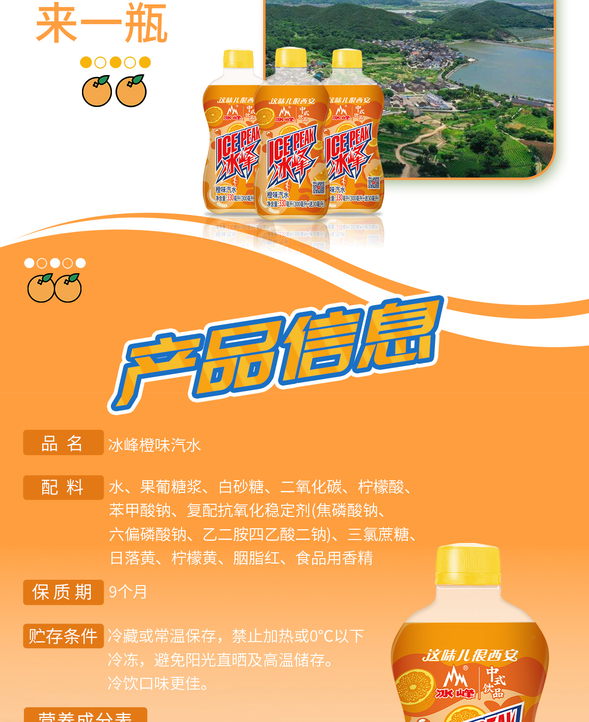 冰峰新品橙味汽水中华老字号老汽水330ml瓶装橘子味碳酸饮料整件
