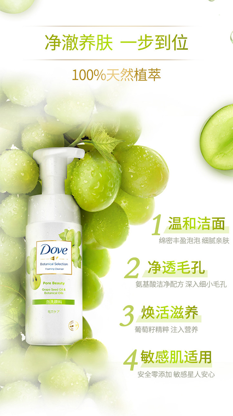 【保税仓】多芬DOVE葡萄籽精粹去角质亮洁面慕斯145ml