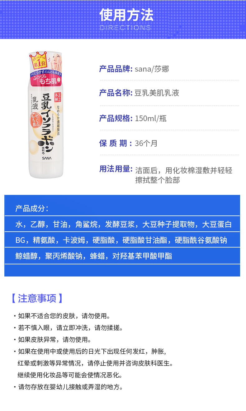 【保税仓】SANA莎娜 豆乳保湿乳液150ml