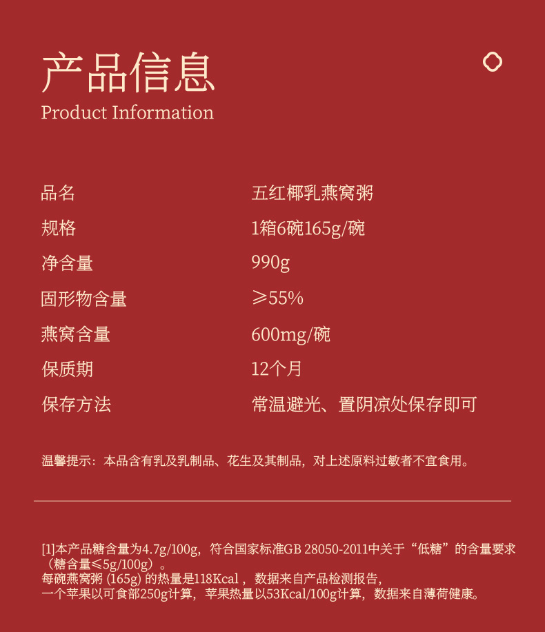 【新品上市 五红滋养 燕窝润颜】梦岭南五红燕窝粥 165g/碗 养气色养红润 由内暖身 食养健康 低糖控热量