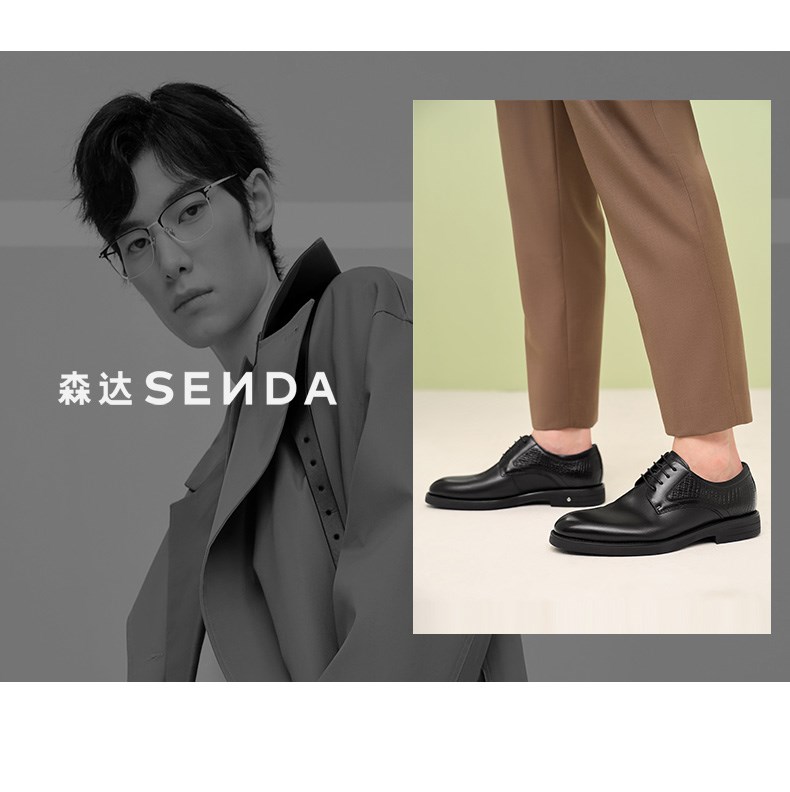 森达秋季商场同款结婚新郎商务正装尖头皮鞋男