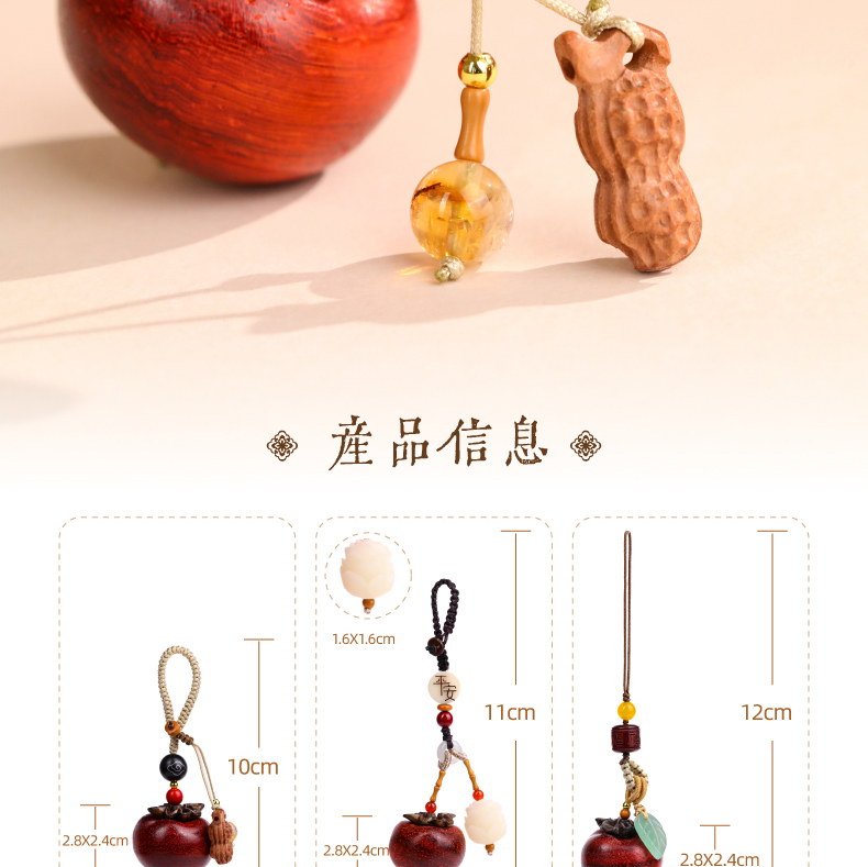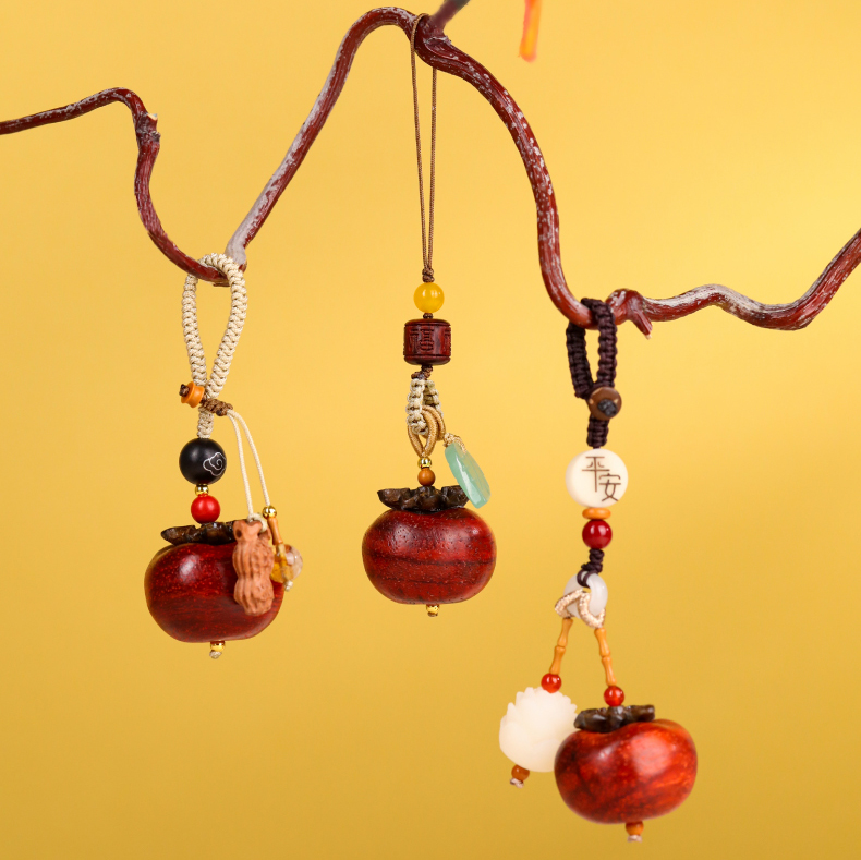【柿子檀木挂件】敦煌福泽新款血檀柿子挂件好事会发生 DIY好运个性手机链包链挂件