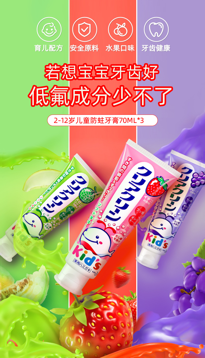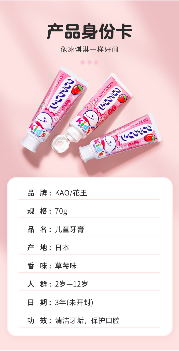 KAO 花王 儿童牙膏(草莓味)70g/支