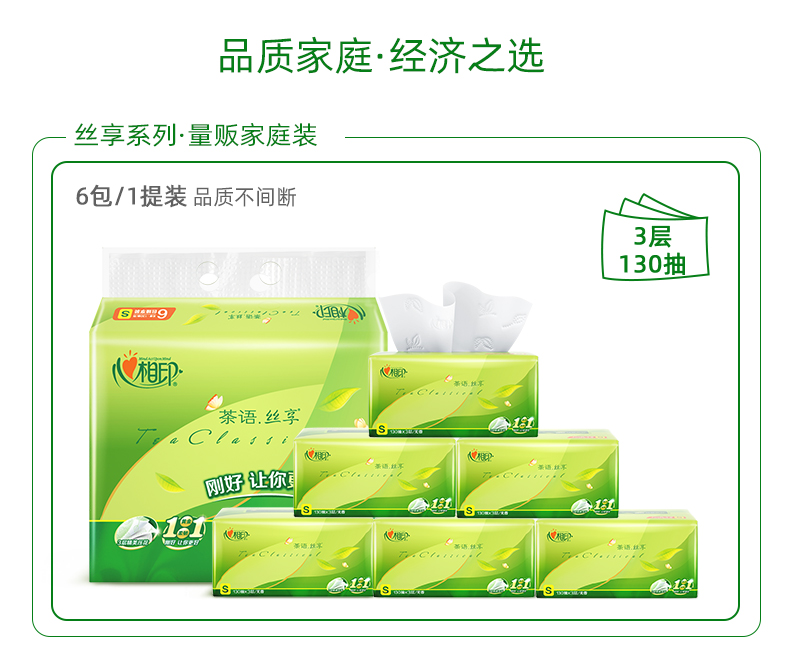 【仅供集采】72包心相印抽纸茶语丝享纸巾3层130抽