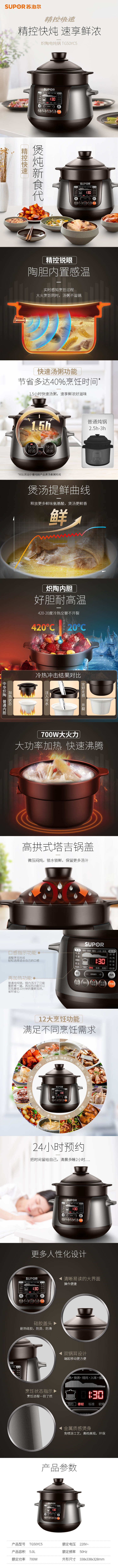 苏泊尔(SUPOR)电炖锅电炖盅煲汤锅耐高温中华炽陶内胆炖汤养生煮粥锅 精控快速 5L容量 TG50YC5