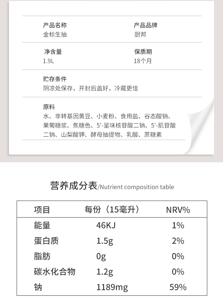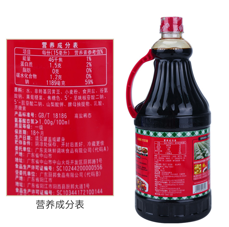 【仅供集采】厨邦金标生抽1.9L*6瓶整箱炒菜点蘸凉拌火锅家用调味品