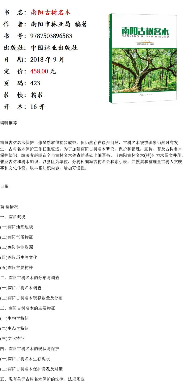 南阳古树名木 9658 南阳市林业局 编著 地形地貌 气候特征 林业资源 历史与文化 南阳主要树种 古树名木图谱 中国林业出版社畅销书