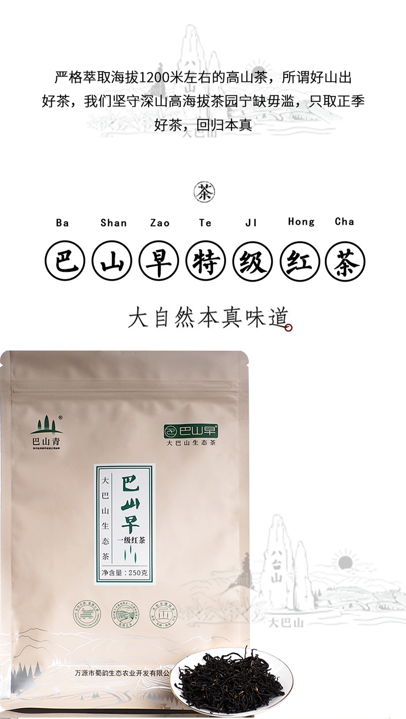巴山早一级红茶毛尖250g袋装富硒之都万源高山硒茶一级生态茶叶
