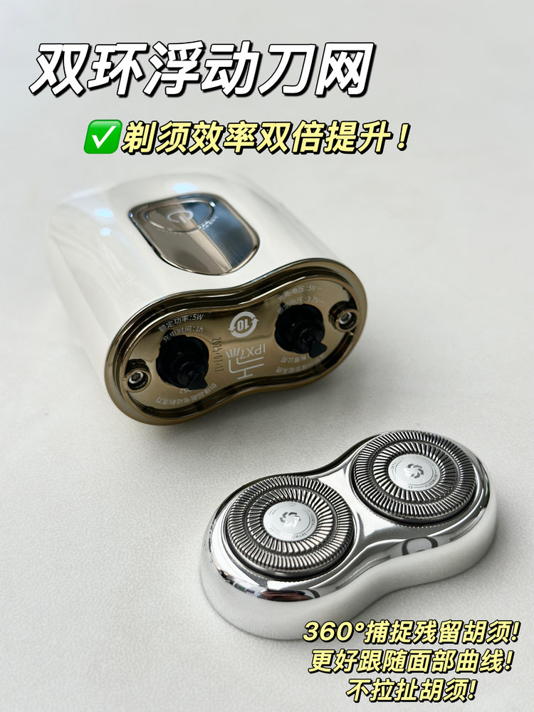 ✅ 温柔又能打: 双环弧面刀网:贴脸不卡须,敏感肌也能用!