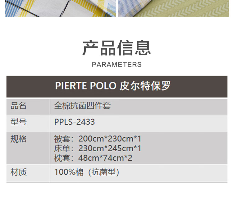 皮尔特保罗 全棉抗菌四件套-米格利 PPLS-2433