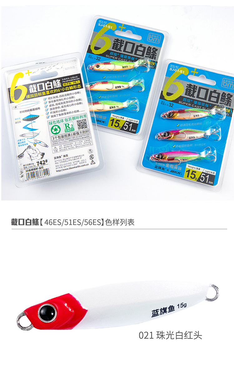 BKK 蓝旗鱼路亚铁板截口白条 白鲦新增加7克