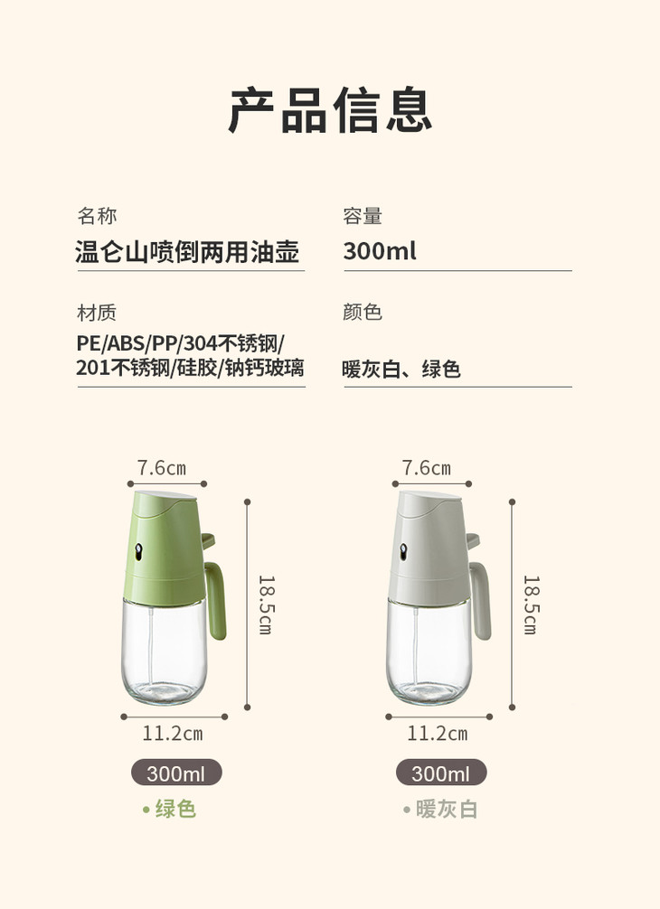 优选丨温仑山Velosan 喷倒两用油壶300ml 可喷可倒两种模式切换;加厚无铅玻璃,自动开合不易滴油挂油