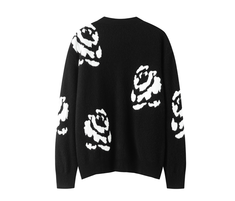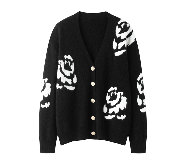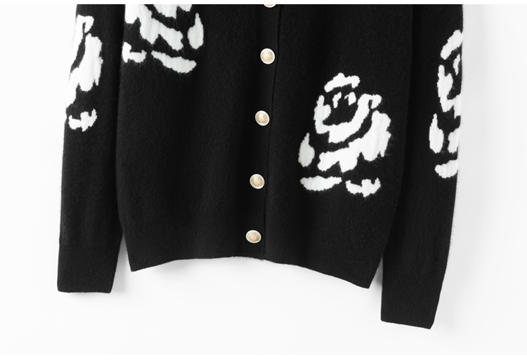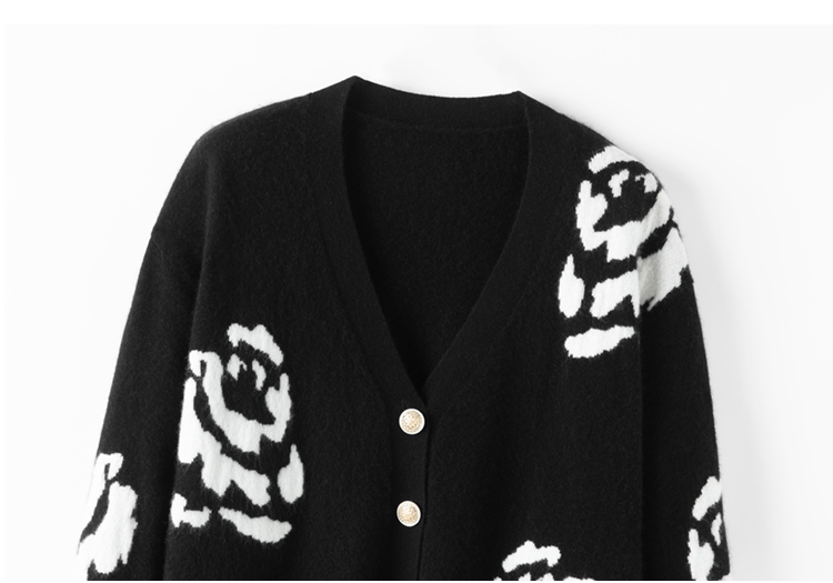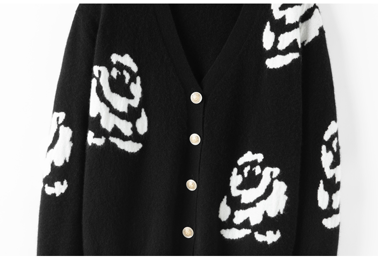 S·Y·C【暗夜花影】山羊绒V领玫瑰花针织开衫外套R25050