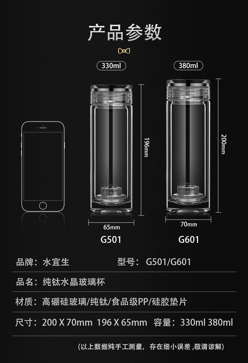 水宜生 水晶泡茶玻璃杯G501/G601 330ML/380ML