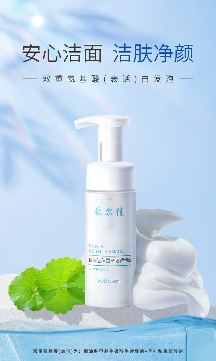 敷尔佳积雪草舒缓修护洁面泡泡150ml 氨基酸洗面奶洁面泡沫敏感肌温和深层清洁 心选到家