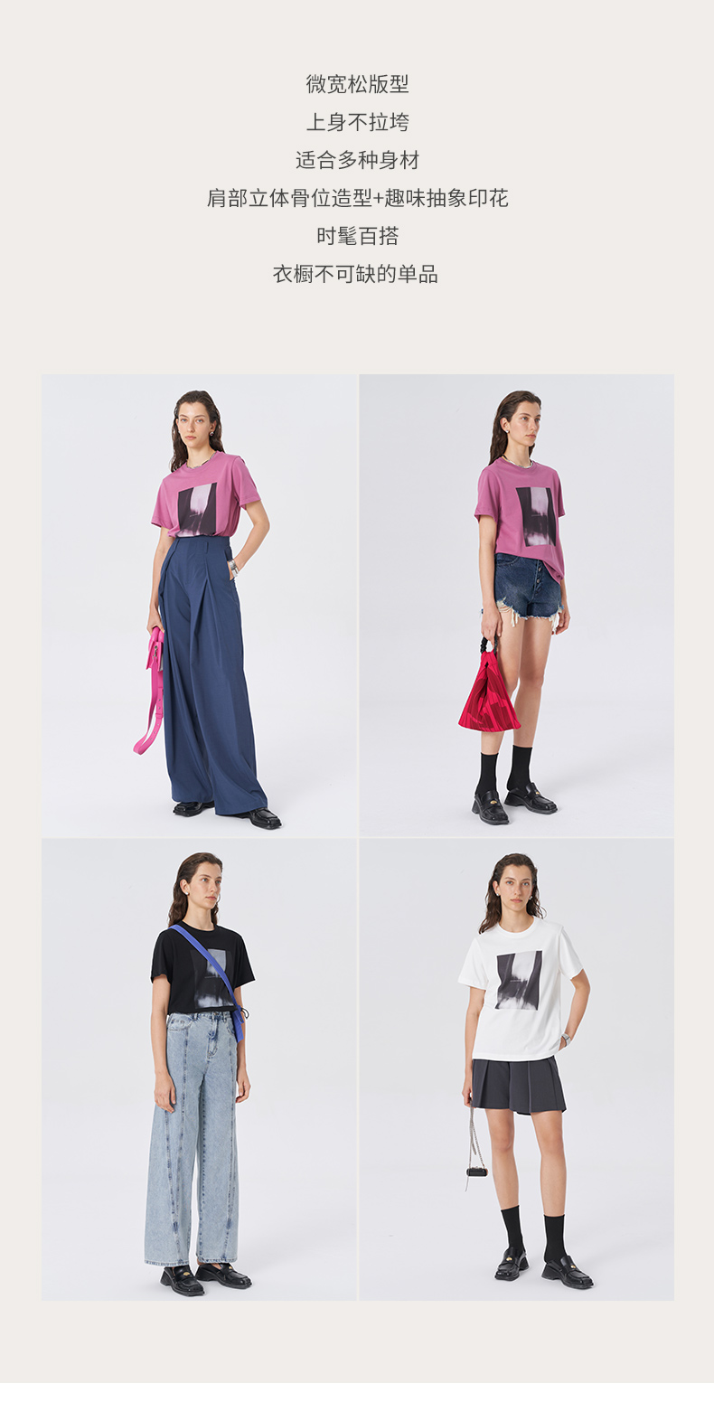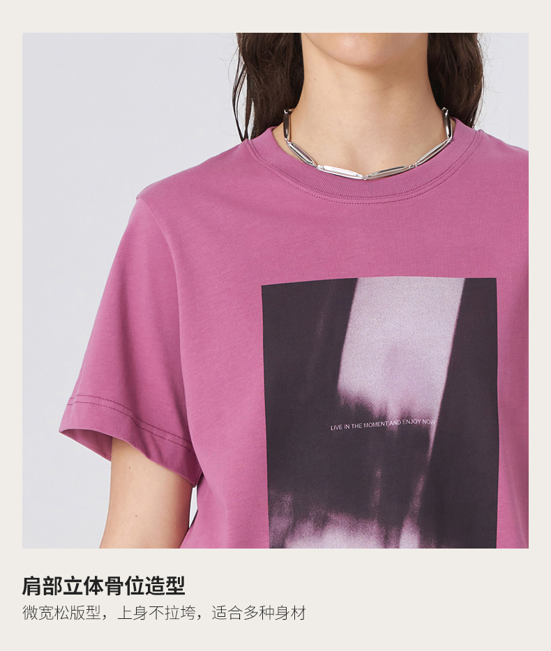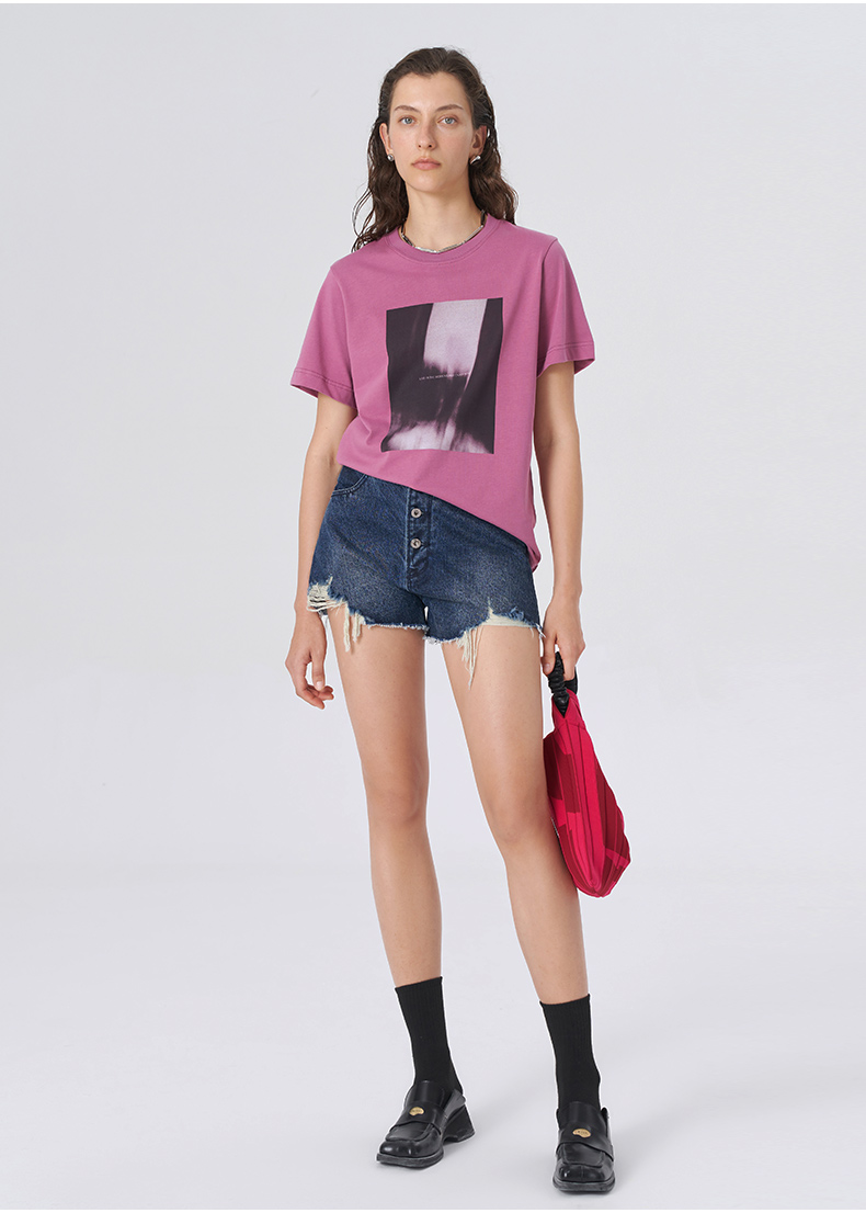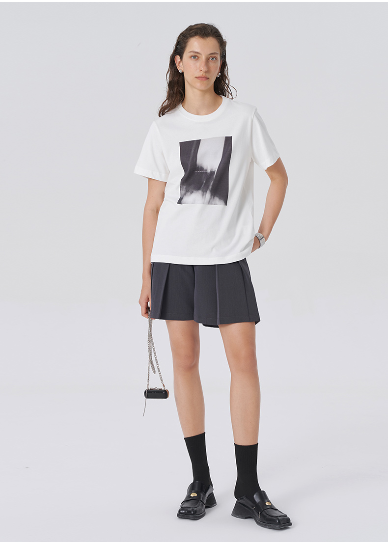 Self Who2023新款亲肤舒适圆领微宽松趣味抽象印花纯棉短袖T恤女