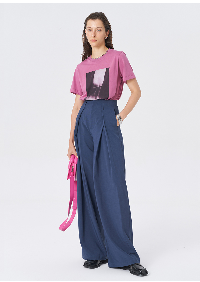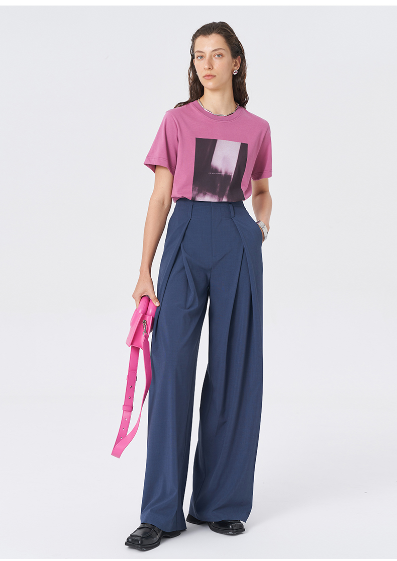 SELFWHO经典双褶阔腿西裤女2025春季新款宽松显瘦百搭通勤休闲裤