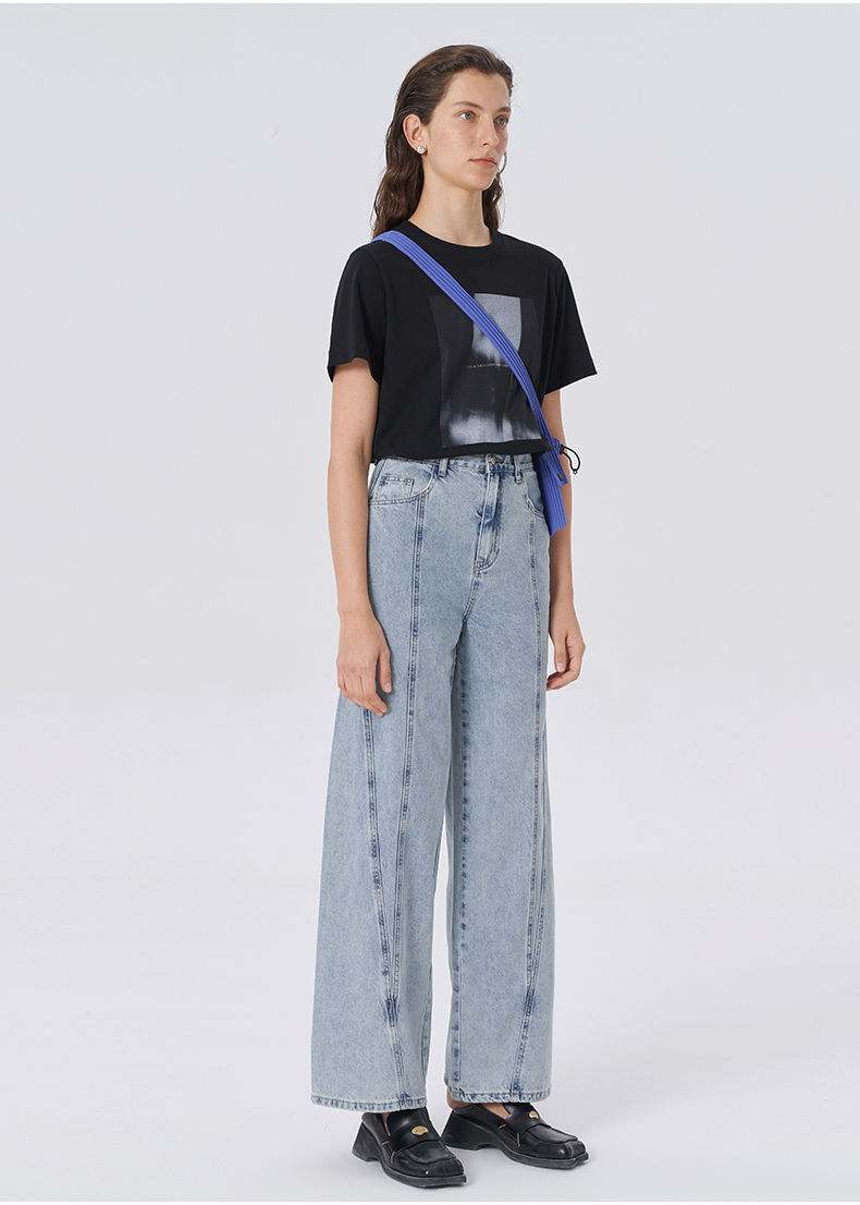 SELFWHO莱赛尔混纺蓝色牛仔裤女2025夏季新款宽松高腰直筒阔腿裤