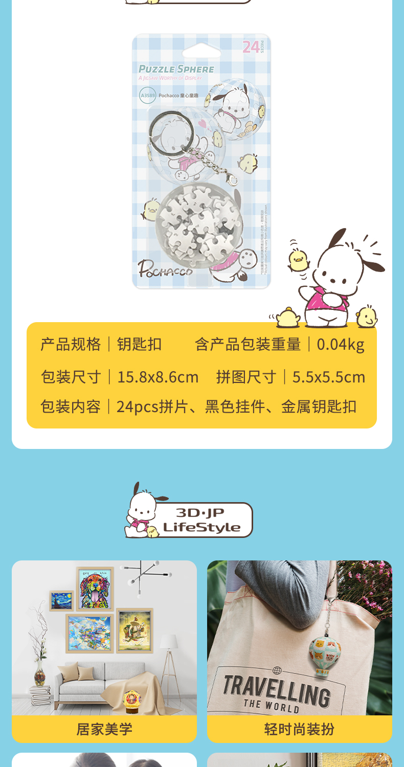 24片 钥匙扣拼图 塑料拼图 A3589 Pochacco 童心童趣