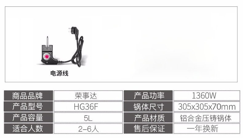 荣事达(Royalstar) 多功能电热锅1 5L HG36F