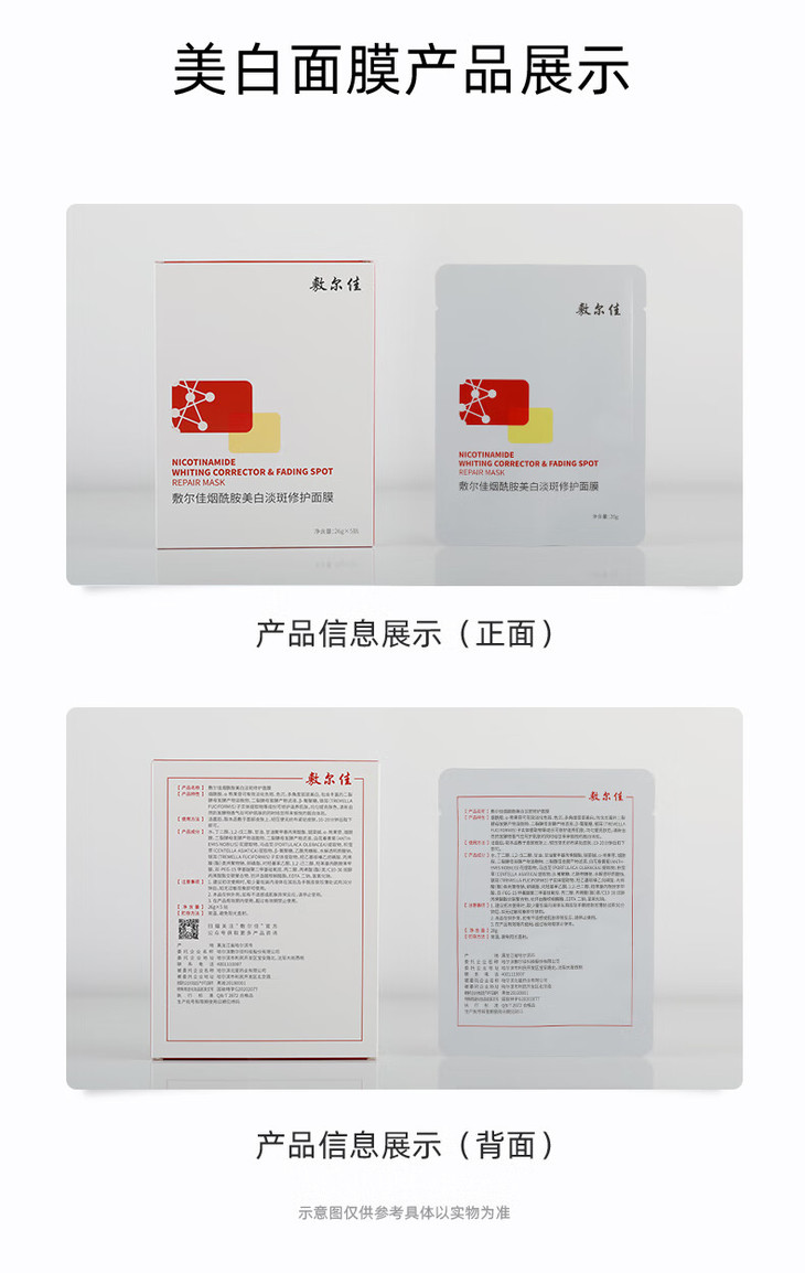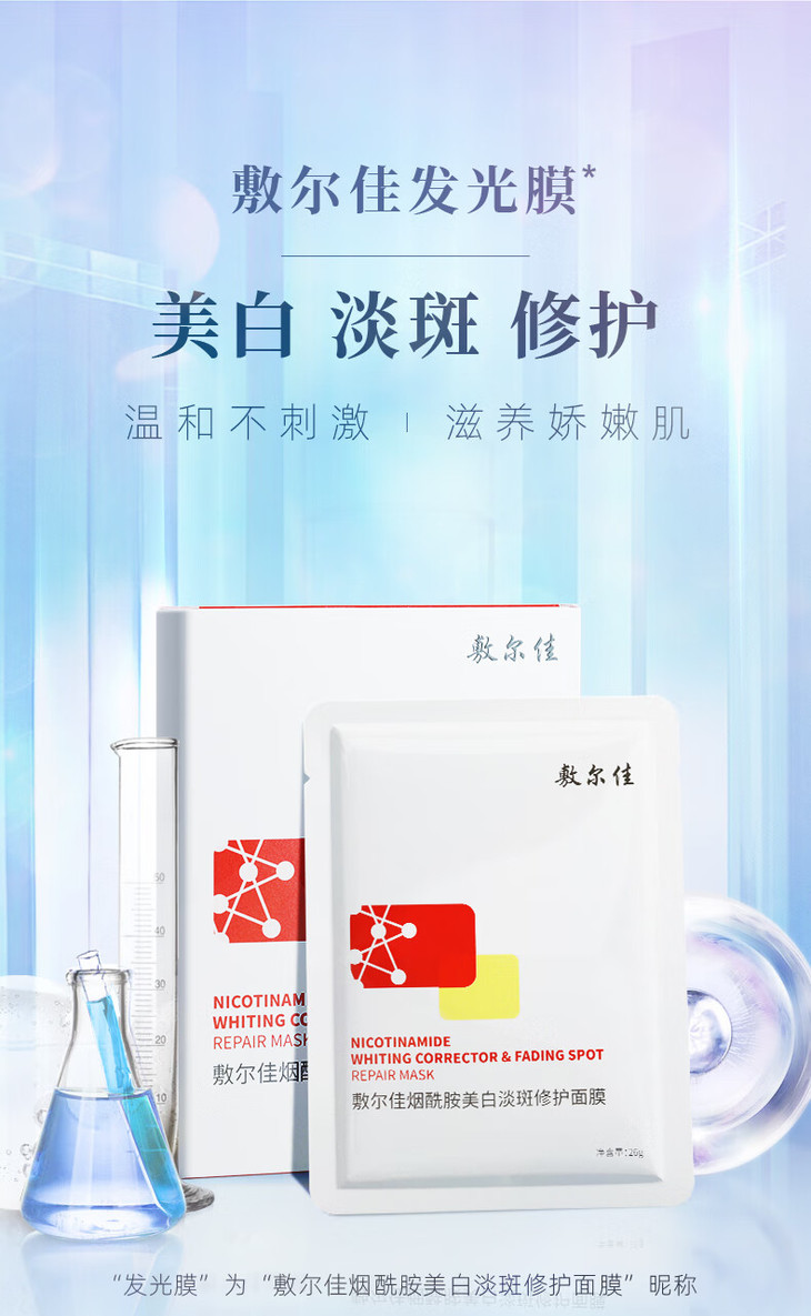敷尔佳烟酰胺美白淡斑修护面膜26g*5片 美白修护提亮面部膜红膜 心选到家