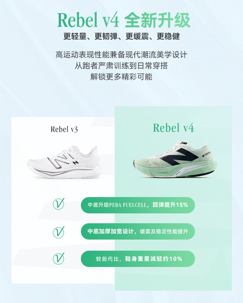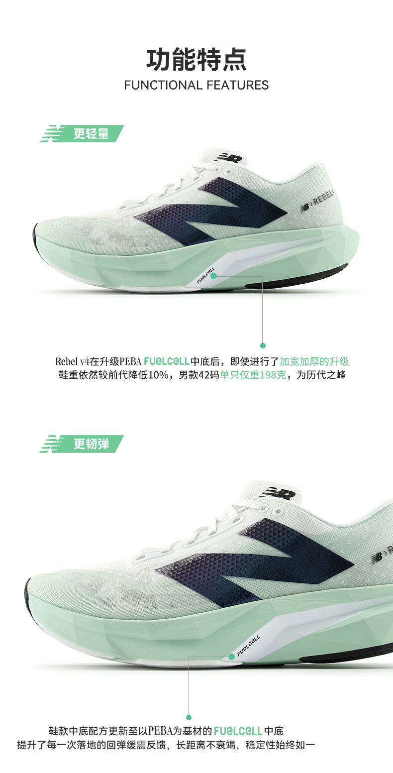 NEW BALANCE/NB Rebel V4男女款轻量竞速专业训练运动缓震缓冲跑步运动鞋